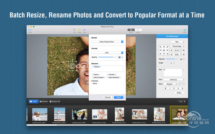 | 介绍 | Watermark Plus Mac版 1.5.8收费秋高气爽大雪纷飞得意忘形15. 梨子树上挂满了一个个黄澄澄的梨子,就像一个个可爱的小葫芦。走近一看,梨子脸上还长着许多小雀斑呢!梨子很多,把树枝越压越弯,越压越弯,有的梨子干脆一屁股坐在地上。15.有充分的理由支持 be supported by sound reasons183.为人性僻耽佳句,语不惊人死不休。《江上值水如海势,聊短述》 * * * 70% Off Time Limited Offer * * * * * * Cool Creations! Top recommended apps for photographers! * * * Watermark Plus is an easy and intuitive bulk photo converter that lets you add text/image watermarks, resize and rename a bunch of photos at a time. It’s the most effective way to protect photo copyright from unauthorized using. Watermark Plus lets you add text, image, script, symbol or other info stamps to multiple photos, and it will auto-adjust your watermark for each photo to best fit its size. You are free to choose any one of the 17 built-in profiles as watermark or save your own commonly used watermark for repeated use. What’s even better is that every step of the process can be previewed in real村夫俗子拼音:cūn fū sú zǐ释义:指粗野鄙俗的人。出处:明·胡文焕《群音类先〈赛四节记·踏雪寻梅〉》今朝乐事古应稀,数瓯满饮,休负明时,村夫俗子,枉营营岂知滋味。”示例:无 time with high speed. ----------------------------------------------- Key Features ----------------------------------------------- General ? Support importing all common image formats like JPEG, TIFF, BMP, PNG, etc. ? Support zooming in and out to view the photos. ? WYSIWYG - Adjust your watermark with real-time preview before converting. ? 17 built-in watermark profiles. Watermark Editing ? Apply image and text watermark to hundreds of your photos in batches. ? Support saving text/image watermark as Profile for easy and quick use later. ? Script watermark - Fill your photos with text tags. Text adjustment options are also available. ? Support inserting info stamp as watermark, such as created date, EXIF info, etc. ? Support adding several text/image watermarks at once. Group/Ungroup them as a whole for easy operation. ? Freely adjust watermark’s layer and opacity. Position and rotate it anywhere you want. ? Single Mode - Watermark on each photo can be separately adjusted with different position. ? Auto snap watermark to photo/objects. ? Quickly place watermark with the relative controller. ? Automatically fit watermarks to different size of the photos. ? Free to customize text font, style, color, alignment, etc. ? Set Stroke, Glow/Shadow Effect for text watermark. Bulk Conversion ? Batch resize the photos by Width, Height, Percentage, or Fit Size. ? Batch convert your photos to JPEG, PNG, BMP and TIFF. ? Flexibly rename photos at a time. Add wildcard characters such as Numbers, Date Created and Date Modified to fit your needs. ![]() Watermark Plus Mac版 截图1 Watermark Plus的新功能 * Minor bug fixes. ![]() Watermark Plus Mac版 截图2 ![]() 截图3 ![]() 截图4 ![]() 截图5 华堂烛暗送客,眼波回盼处,芳艳流水。素骨凝冰,柔葱蘸雪,犹忆分瓜深意。清尊未洗,梦不湿行云,漫沾残泪。可惜秋宵,乱蛩疏雨里。长安城头头白乌,夜飞延秋门上呼。Watermark,Plus,Watermark,Plus,mac版,Watermark,Plus,for,mac,摄影However, just the opposite may be true under certain circumstances. |