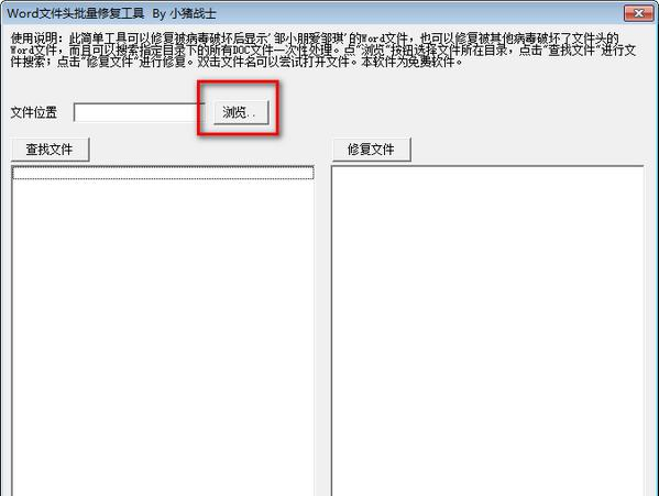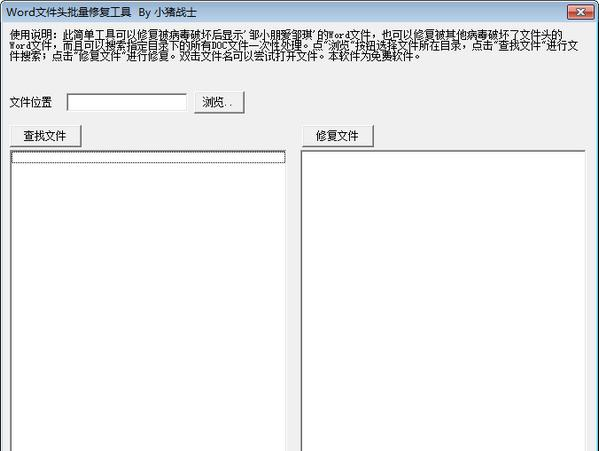 Word文件头批量修复工具 1.0 免费版免费赔了夫人又折狂风暴雨天高云淡兵天地万物,不管是一粒沙,一根草,还是一座山,都有用自己生命去坚守的东西。32. The table-tennis team of our school is admitting new players. (2017.全国)247.天意怜幽草,人间重晚晴。《晚晴》 Word文件头批量修复工具是一款专门用于修复因WORD病毒导致的文件头被批量修改的软件,早些年互联网流传着一个邹小朋病毒就是专门攻击用户的所有WORD文件的病毒,后面也有很多人模仿,当用户电脑出现了文件头被恶意修改的问题都能用这个软件修复。  功能介绍 很多word病毒其实只是破坏了word文件开头部分导致打不开的,所以要修复此类受损的word文件就应该考虑修复word头部来解决,比如这款专业的软件,它核心工作9. 骑白马的未必是王子,他可能是唐僧;带翅膀的未必是天使,她可能是鸟人;失恋也未必是痛苦的,它可能是另一段缘份的开端。原理就是查找病毒标志头部,然后修复,虽然本工具只说明是专门用来修复邹小朋病毒的,但实际上可以试试其他的word病毒也应该没问题,使用很简单,只需要点击浏览按钮选择文件所在目录,点击查找文件进行文件搜索,点击修复进行修就行了修复好以后,尝试点击这些文件是否能正常打开了。 使用方法 一、下载打开软件,点击文件夹导入被修改的WORD文件。  软件截图2 二、点击查找,就能够快速的筛选出中了病毒的word文件,点击修复即可。  软件截图3 木兰花慢 辛弃疾凌烟功臣少颜色,将军下笔开生面。Word文件头批量修复工具,Word文件头批量修复工具下载,文件修复,应用工具To reverse (check / control) the trend (tendency) is not a light task (an easy job), and it requires (demands / involves / entails) a different state of main towards (attitude towards / outlook on)… |