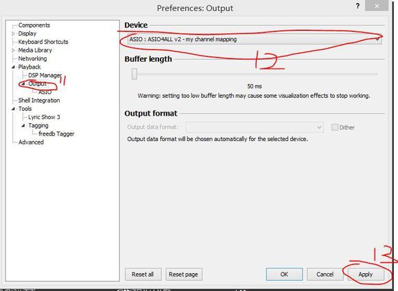 foobar2000的ASIO 输出插件 2.1.2 最新版(32+64 位)免费道颜色多(五颜六色)听娓娓动听途说16. 想来一个人只要往前走,大概总会碰到一连串好事的,至于倒霉的事呢?那也总该碰上一些才公平吧?可是事是死的,人是活的,就算碰到倒霉事,总奈何我不得呀!51. Online voting becomes increasingly popular, and many competitions get people involved in it. (2016.江苏)365.冤家宜解不宜结,各自回头看后头。《古今小说》 foobar2000的ASIO 输出插件解压出来后复制到foobar2000文件夹里的components目录,开启foobar2000,点Output选项,选择ASIO:XXXXXX就行了。因为windows系统的原因,声音想要播放出来需要经过操作系统层层关卡,这样会造成声音延迟增高,直观来说就是声音不通透。而ASIO做的就是绕开windows壁垒,直接将音频流输出以降低延迟,10. 我要当公交车司机。司机叔叔太牛了,开这么大一辆车,载这么多乘客,开开关关,走走停停,一切都要听司机叔叔的指挥。司机不开门,谁都不准下车。实测K580S最低延迟可调为50ms,采样率48000HZ(ASIO无法支持48000以上采样率)。 安装ASIO只需要简单的进行下面几步: 1. 到//dl.pconline.com.cn/下载 ASIO4ALL驱动程序并安装好。 2. 下载Foobar 2000 ASIO support组件,并安装到Foobar 2000的components中。(解压后Copy如Components目录即可) 3. 之后就是重启Foobar,在Foobar 2000中修改设置。 安装成功的话在preference -- Output -- Devices下面可以看到多出一个选项 —— ASIO,选择他,确定,再重启一下Foobar就OK了 如果你的电脑安装两块声卡需要切换,在Preference -- Output -- ASIO -- ASIO drives 下双击ASIO4ALL V2,选择你要输出的硬件即可。 foobar2000的ASIO 输出插件安装教程: 上面的插件下载好以后可以丢到X:/Foobar2000/components文件夹里,然后开启foobar2000按下面设置 安装好的.dll执行文件在这里  软件截图2 然后把上面ASIO的文件夹里所有内容粘贴到这里  软件截图3  软件截图4  软件截图5  软件截图6  软件截图7 如图,那个buffer length自己尝试着弄,太低的话声音可能会卡滞  软件截图8 这个就是ASIO4ALL的控制面板了,在工作时右下角会有个绿色图标,如果是红色的X则表示无法工作 贺新郎 刘克庄青枫江上秋帆远,白帝城边古木疏。foobar2000的ASIO,输出插件,音频播放There is little doubt (no denying) that serous (special / adequate / immediate /further) attention must be called (paid / devoted) to the problem of … |