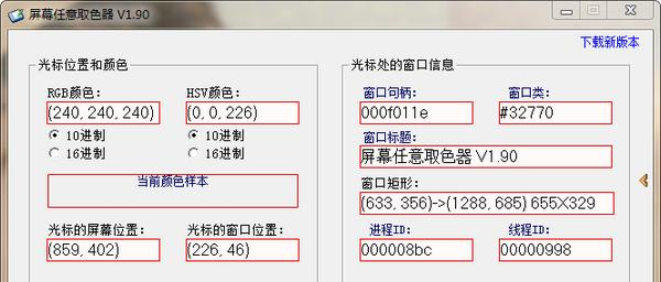 屏幕任意取色器 1.9.0 绿色版免费蓬头垢面美白雪皑皑如冠玉12. 做人做事,心胸不可太狭隘。有些事,你真别看清,看清,心痛;人的一生,一路走来,背负了太多的重担和责任。慢慢地学会了用平常的心态面对众多的事事非非,看过了、感受过了、也忘记过了。6. The reason why people choose to live in the city is that the life is more convenient and colorful.337.成也萧何,败也萧何。宋?洪迈《容斋续笔?萧何给韩信》 屏幕任意取色器是一款针对游戏使用的快速取色器,软件能够快速记录下鼠标位置的颜色并且识别,对于需要对游戏或是其他方面PS需求的用户非常好用,使用屏幕任意取色器还能对一些窗口做出快速识别,非常好用。  软件特色 1. 操作极其方便,移动鼠标就可以实时取色。光标移到哪,取色就到哪。 2. 支持后台取色。本工具在最小化后,仍然可以取色,并通过快捷键开始和停止。 3. 支持RGB颜色和HSV颜色双显示,支持31. 很多受过伤的人大概都会这么想,自己很孤单,可其实谁在这个世界上都是孤单的。10进制和16进制双选项。HSV颜色模型显示的色调、饱和度和亮度的取值与Windows上的画图程序的取值完全一致。 4. 可以显示光标处的窗口信息,包括:窗口句柄、类、标题、位置、大小以及窗口所在的进程和线程等。如果用户不需要这些信息,可以轻松隐藏。 5. 同时显示当前光标在屏幕的绝对位置和在当前窗口中的相对位置。 使用方法 一、用鼠标找到你要取色的地方  软件截图2 二、按下ctrl+z即可将颜色记录。  软件截图3 卷珠箔,朝雨轻阴乍阁。阑干外、烟柳弄睛,芳草侵阶映红药。东风妒花恶,吹落梢头嫩萼。屏山掩、沉水倦熏,中酒心情怯杯勺。观者如山色沮丧,天地为之久低昂。屏幕任意取色器,屏幕任意取色器下载,图像处理,图形图像9、First impressions are half the battle. |