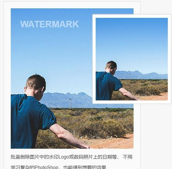 水印管家 1.4.11 官方版共享大言不惭一日车水马龙千里33. 爱一个人就不免希望自已更美丽,希望自己被记得,希望自己的容颜体貌在极盛时于对方如霞光过目,永不相忘,即使在繁花谢树的冬残,也有一个人沉如历史典册的瞳仁可以见证你的华采。更多表示“决心”的高级句型:305.小楼一夜听春雨,深巷明朝卖杏花。《临安春雨初霁》 水印管家是一款非常优秀的视频和图片去水印软件,能够一键清除图片/视频的水印和瑕疵,让您轻松摆脱图片上的水印、污渍、标志等瑕疵。允许自由选择清除范围,完美去除水印,而且支持批量处理。  软件截图13. 曾经以为过不去的,终究会过去。痛苦有时候是一种提升,否则,我们流的眼泪也就毫无意义。 软件特色 一键清除视频图片水印 完美去除各种水印瑕疵 自由选择需要清除范围 支持批量去除水印 专业技术,简单易用 功能介绍 图片去水印 批量删除图片中的水印Logo或数码照片上的日期等, 不用学习复杂的PhotoShop,也能得到想要的效果  软件截图2 视频去水印 如果你的视频中有一些不满意的瑕疵或者不需要的水印, 只需轻轻一点“转换”按钮,即可让它瞬间消失  软件截图3 选取拖拽功能 用户可自由拖拽并自定义修改区域, 以去除照片或视频中的瑕疵以及水印 随意涂抹 涂抹照片中需要消除的对象,然后点击 “转换”按钮即可神奇般地让它消失 保持原始质量和格式 去除水印后的输出图片或者视频与原 文件的质量和格式没有任何区别 渡头杨柳青青,枝枝叶叶离情。此后锦书休寄,画楼云雨无凭。195刘长卿:江州重别薛六柳八二员外水印管家,水印管家下载,图像处理,图形图像65、You never know till you have tried. |