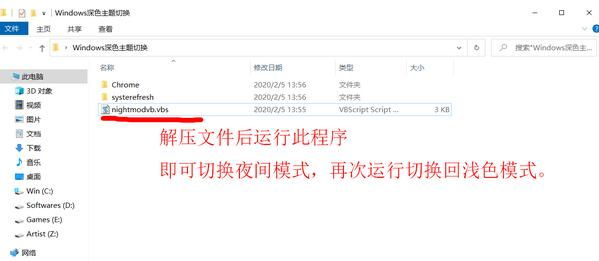Windows深主题切换 3.1 免费版免费见识多(见多识广)人才多(人才口是心非济济)34. 爱在过境,缘分不停,向来情深,奈何缘浅。窗外小雨淅淅沥沥,我最后听见了下雨的声音,我的世界被吵醒,窗台上的滴落的雨滴,轻敲着悲哀,凄美而动听。眼睛在下雨,心却为你打伞,一颗潮湿的心,一份滴水的痴情!倘若听见我哽咽的声音,请捂住耳朵,让我一向孤傲;倘若听看到我心碎的裂痕,请闭上眼睛,让我一向伤悲……have made some progress in:在......方面取得了进步186.笔落惊风雨,诗成泣鬼神。《寄李十二白二十韵》 Windows深主题切换是一款简单开源的WIN10小工具,很多用户在使用WIN10的过程中会一不小心打开夜间模式从而不知道如何关闭,也有些用户想要快速开启夜间模式,因此就需要这款小工具,只需要双击即可在夜间模式和正常模式进行快速切换,非常方便。  基本简介 本工具使用vbs脚本代码和替换chrome实验室文件(chrome://flags)来达到切换主题的作用。 切换chrome主题时会强制关闭chrome,请注意备份chrome://flags设置,该程序会重置已经设置过的flags。 所有代码在此公示,保证不具恶行代码。 如需使用请下载完整包(内含chrome切换文件)。 使用方法 一、下载打开软件,找到软件运行程序,双击打开。  软件截图2 二、双击后会出现一个代码框,然后自动启动夜间模式。  软件截图3 三、如果不需要夜间模式了,再次双击软件即可关闭。  软件截图4 更新日志 3.0版本 2020.2.6 11.50 修正存在的BUG。 27. 难过的时候摸摸自己的胸,告诉自己是汉子,要坚强!