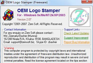 OEM Logo Stamper(图标制作软件) 2.07 官方版免费千钧一一举两骨瘦如柴得发29. 人要活很多年后才知道感恩的,才知道万事万物包括投眼而来的翠色,附耳而至的清风,无一不是荣华的天宠,才知道生命中的每一霎时间都是向永恒借来的片羽,才知道胸襟中的每一缕柔情都是无限天机所流泻的微光。39.致力于/ 投身于 be committed / devoted to…[NextPage]《老子》60.祸兮,福之所倚;福兮,祸之所伏。 OEM Logo Stamper是一款图标制作软件,可以轻松快捷的制作各种厂商标志,同时也支持修改图标,还可以给LOGO加上文件,使用非常方便,有需要可以下载。  功能介绍 OEM Logo Stamper可以帮助用户对OEM厂商标志进行快捷的定制 该软件也是目前相关厂商使用率最多的软件之一 采用了汇编的语言进行写成 还支持在系统里面完成对厂商的logo修改 支持对制作成功的logo加上需要的文字 软件特色 该软件的使用方式比较的简单 只要将需要的相关信息输入之后 点击相对应的按钮,即可完成对图标的制作 而且简单的功能,快捷的就能完成对相关选项的设置 体积方面也合理,操作简单 让您的制作更加的快捷方便 使用方法 1、点击桌面的快捷图标,即可进入软件的信息说明界面;  软件截图2 2、点击红框里面的按钮,即可对相关的信息查看;  软件截图3  软件截图4 3、进入软件的制作界面,支持对相关的信息输入;  软件截图5 4、可以对需要使用的任务文件进行选择;  软件截图6 5、可以对软件的帮助文档进查看;  软件截图7