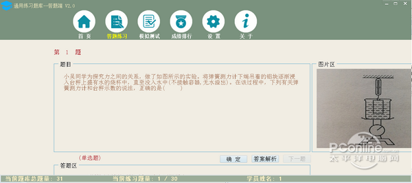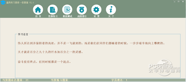 六、进入考试端,软件有答题练习、模拟测试和成绩排行功能,可以根据孩子的成绩来排行。