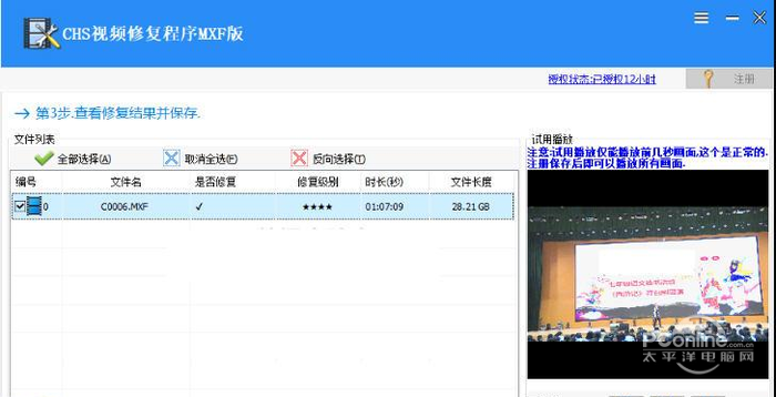 CHS视频修复程序mxf版 正式版其它地动山纷至沓来摇花团锦簇11. 改变,每个人都能够做,但不是每个人都愿意做,更重要的是这种改变到底适不适合自己。高三时期的性情和性格,其实已经“秉定乾坤”了,要全方位地改变自己,很难。改变,就是要冲破不适合自己且阻碍自己学习进步的习惯。努力和其他同学保持良好关系非常重要。281.泪眼问花花不语,乱红飞过秋千去。《蝶恋花》 CHS视频修复程序mxf版主要用于修复无法播放的MXF视频软件。MXF是SMPTE(美国电影与电视工程师学会)组织定义的一种专业音视频媒体文件格式。MXF主要应用于影视行业媒体制作、编辑、发行和存储等环节,由此可见MXF文件的重要性。MXF文件在拍摄中意外断电、关机等误操作会导致MXF文件无法播放(或者仅生成RSV文件),此时就需要修复文件就可以还原原始素材。目前在恢复、修复软件市场上并没有专门修复MXF文件的工具。CHS数据实验室的工程师通过长时间对MXF文件的分析发现此类文件存在修复的可能性,并制定了修复方案,在通过长时间的实践确定了修复方案的稳定性。在广大客户的要求下,我们开始着手MXF修复程序的开发,经过不断的调试、优化-----CHS视频修复程序MXF版成功发布。