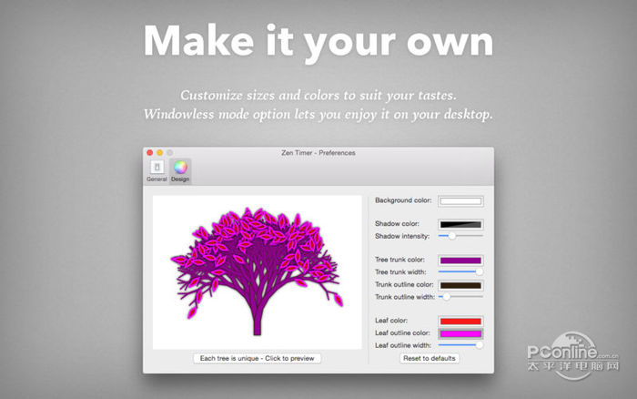 Zen Timer Mac版 1.5收费万无定时炸弹弹尽粮烈日炎炎绝一失40. 阳光的酒调得很淡,却很醇,浅浅地斟在每一个杯形的小野花里。到底是一位怎样的君王要举行野宴?何必把每个角落都布置得这样豪华雅致呢?让走过的人都不免自觉寒酸了。55. Many people are becoming aware of the importance of exercising.207.云横秦岭家何在?雪拥蓝关马不前。《左迁至蓝关示侄孙湘》 Meet Zen Timer - the gorgeous Focus Timer that really works. While you work or study, Zen Timer uses fractal math to generate a unique new tree every time. Watch your tree mature slowly, growing leaves and getting bigger as the period progresses. When the period ends, the leaves gra碧血丹心拼音:bì xuè dān xīn释义:满腔正义的热血,一颗赤诚的红心。形容十分忠诚坚定。出处:《庄子·外物》苌弘死于蜀,藏其血,三年而化为碧。”示例:无cefully fall to the ground, signifying that it is time to take a break. Using Zen Timer helps you get into the zone: The timer is organic, not mechanical. It does not distract you and it is beautiful to look at, at any stage. You can use Zen Timer in windowed mode or as a windowless application directly on your desktop. It is completely customizable, so you can set colors and sizes to fit any desktop design. Most importantly, the way it is designed and the way it works helps you relax, allowing you to work better and do more. Count your Time boxes with style! Key Features: - Organic, fractal, each-time-unique focus timer. - Fully customizable. - Easy to set, not distracting to use. - Beautiful to look at. - Windowed and windowless modes available. - Beautiful statistics: each unique tree is visible on your Progress report. This is just the beginning. We have plans to periodically update Zen Timer with various new designs, all inspired by nature. iPhone and iPad applications are also in the works. With your support, we plan to keep Zen Timer always fresh and beautiful, across all platforms. If you have any questions or want to share your feedback, just drop us a tweet: @SmartCodeHQ. For other inquiries or suggestions, we also provide fast, personal support via email - use the Support link here on the Mac App Store to contact us!  Zen Timer Mac版 截图1 Zen Timer的新功能