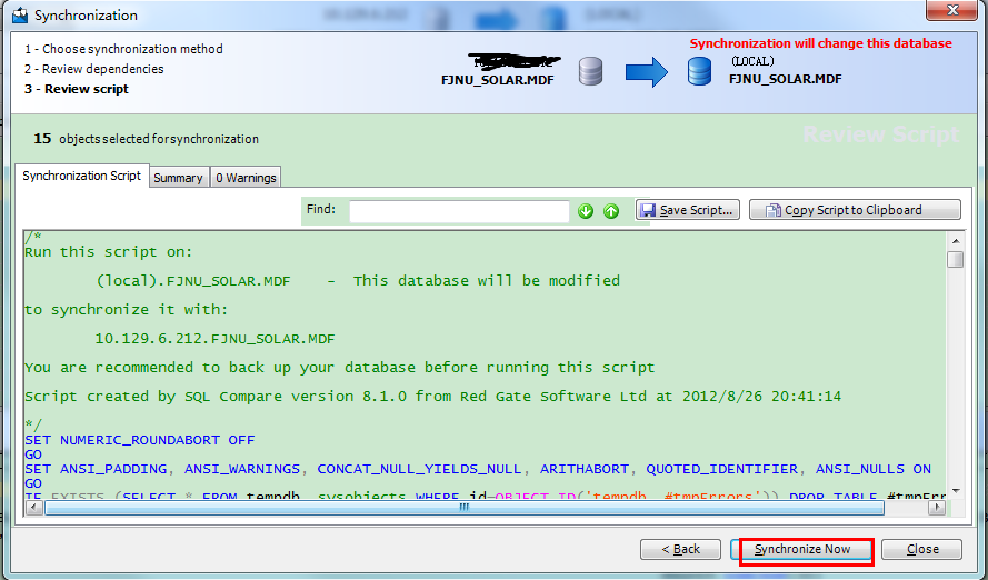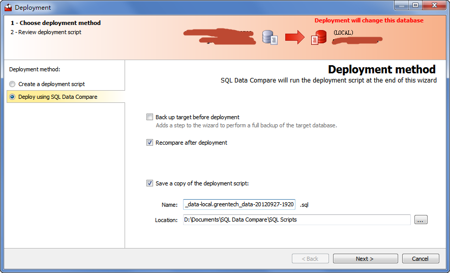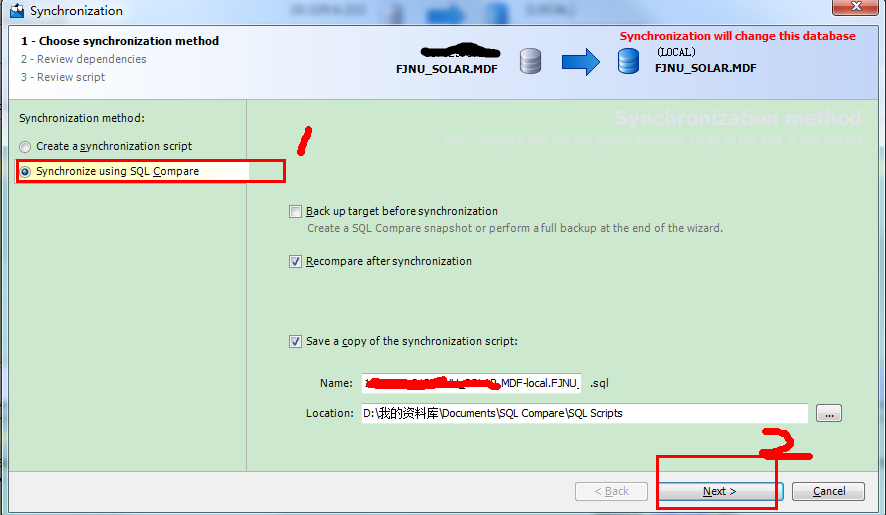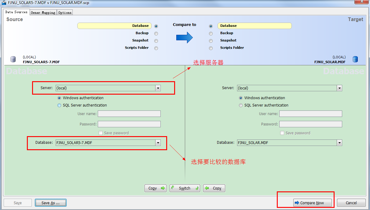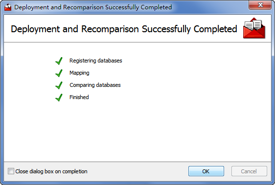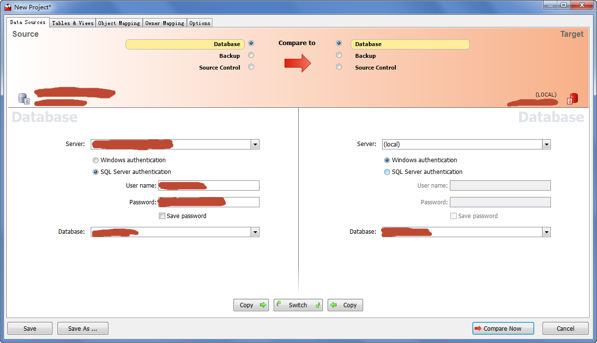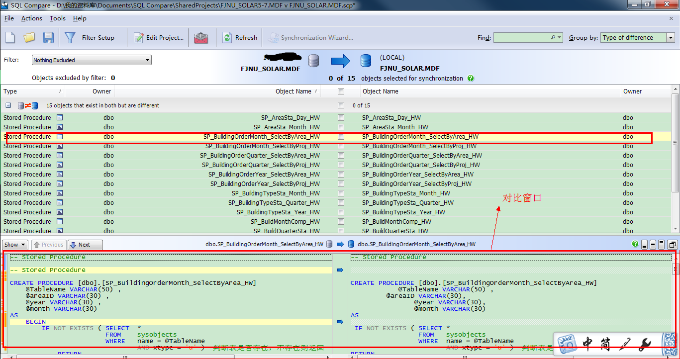 | 介绍 | 数据库比较同步工具(SQL Compare) 10.4.8.87 完整版免费目秋风送爽空寒风刺骨一切6. 幸福人生的三种姿态:对过去,要淡;对现在,要惜;对未来,要信。没有人陪你走一辈子,所以你要适应孤独,没有人会帮你一辈子,所以你要奋斗一生。花在教育锻炼上的时间是25分钟,只有12分钟的时间用来做家务。101.大行不顾细谨,大礼不辞小让。 SQL Compare是常用的比较两个数据库之间差异的工具,主要就帮助大家比较数据库中的对象,比如说存储过程啊、数据啊、表单什么的、数据库中的数据,表的结构。SQL Compare支持比较真实数据库和数据库快照、备份、版本控制器或文件夹44. 感情的悲剧性就在于:并无银河隔断双星,而彼此早已相忘于江湖。中的构建脚本。SQL Compare甚至支持Windows Azure SQL数据库(SQL Azure)和亚马逊RDS上的SQL Server。该工具与SSMS集成,支持在SSMS界面中比较并同步数据库。 SQL Compare还支持定义定制规则,这样可以有选择地过滤要比较和同步的对象。此外,还可以把比较结果导出为Excel或者HTML,当然生成部署和回滚脚本也很容易。甚至可以创建对象快照用于审计和回滚。 破解教程 由于我是刚才破解过程忘记截图了,Sorry。不过内容以及界面和以下都是一样! 第一步。打开SQL Server→菜单栏 → 工具→SQL Compare ![]() 第二步。SQL Compare→Help→Enter Serial Number ![]() 软件截图2 第三步。从Keygen获取序列号 ![]() 软件截图3 第四步。输入序列号 ![]() 软件截图4 第五步。点击Activate(注册),注意要先断网,等待一会会提示网络错误 ![]() 软件截图5 第六步。点击Activate Manually(离线注册) ![]() 软件截图6 第七步。把代码复制到注册机中间的文本框内生成相应的代码 ![]() 软件截图7 第八步。把生成的代码复制到右边的文本框中,然后点击Finish(完成) ![]() 软件截图8 附上成功后的About截图。 ![]() 软件截图9 使用教程 首先,在SQL Compare中新建一个项目 ![]() 软件截图10 更细心的人可能会注意到,Red Gate已经带来了相当多的界面变化和功能增强。 我要从我的数据库创建一组差异脚本,所以,我已经设置了源(左侧)服务器以及目标服务器的详细信息。然后点击Compare Now按钮进行数据比较 ![]() 软件截图11 现在,我们已经看到了数据差异地方,我们也可以看看哪些数据是一样的。在上面我画了两个圈相连的部分表示数据记录数的差异。 我们只关心数据在哪部分出现差异,我们进入表和视图“选项卡上,选择相应表。我选择了greentech_Industry_Category表。然后在界面最下面就会出现两个表之间的数据差异在哪里,有多少条差异,以及其详细的数据。 这样的视图你可能看得很不习惯,我也有点不习惯,呵呵 那就让我们选择另外一种垂直的显示方式。 ![]() 软件截图12 在下拉框Show中为Pivot View打上勾, 视图马上就发生变化了,看:左边蓝色部分是列,右边黄色部分分为左(源服务器)数据和右(目标服务器)数据的比较 ![]() 软件截图13 在我们选好表之后就可以点击deployment wizard按钮进行部署了。 ![]() 软件截图14 打开后有两种方式可以选择 1、在指定数据库管理器并且创建脚本,但是不会帮你同步数据,要你自己手动执行脚本。 在这里,你可以选择一个版本的数据库管理器,我选择的是SQL Server 2008,如果你的机子上有装其它版本的,你也可以选择2005之类的。 ![]() 软件截图15 点击Next按钮下一步 ![]() 软件截图16 点击Open Script in Editor按钮下一步 这个时候就会帮你创建脚本并且打开你指定的数据库管理器 ![]() 软件截图17 然后你自己手动执行或者还需要修改其它部分的也可以自己修改,然后再执行。 2、帮你执行脚本同步数据以及输出脚本至你的物理文件*.sql ![]() 软件截图18 右边共有3项可以选择。 1、在部署之前备份目标数据 2、在部署之后重新比较 3、保存一个复制的部署脚本文件 你可以更改文件输出路径以及文件名。然后点击Next按钮下一步 ![]() 软件截图19 期间它会闪过几个界面,一直到这里,显示部署完成。然后点击OK按钮完成部署。 ![]() 软件截图20 如果你没有取消保存文件选项的话,那么可以打开你的文件夹查看脚本 ![]() 软件截图21 数据库比较同步工具(SQL Compare)简单使用教程 1、选择要比较的数据库,点“Compare Now”进行比较 ![]() 软件截图22 2、对比两个数据库之间的差异,选择要同步的东西。红框出是对比窗口,可以看到两个数据库之间的差异 ![]() 软件截图23 3、同步数据库中的对象,点“Synchronization Wizard” ![]() 软件截图24 4、开始同步,因为一直按“下一步”,这里只上图,不在说明步骤。 ![]() 软件截图25 ![]() 软件截图26 ![]() 软件截图27 ![]() 软件截图28 秋江带雨,寒沙萦水,人瞰画阁愁独。烟蓑散响惊诗思,还被乱鸥飞去,秀句难续。冷眼尽归图画上,认隔岸微茫云屋;想半属渔市樵村,欲暮竞然竹。晨摇玉佩趋金殿,夕奉天书拜琐闱。数据库比较同步工具(SQL,Compare),数据库There is no easy (immediate / effective) solution ( approach / answer / remedy) to the problem of …, but … might be useful (helpful / beneficial). |