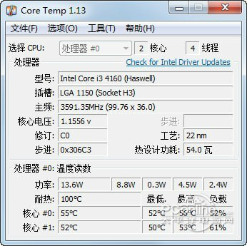 CoreTemp 1.17.1 中文版免费龙马直狂风暴雨言不讳精神16. 唯有以德报怨,把伤害留给自己,让世界少一些仇恨,少一些不幸,回归温馨仁慈友善与祥和,这才是宽容的至高境界。让我们一起努力把世界变得更加美好。267.夫以铜为镜,可以正衣冠;以古为镜,可以知兴替;以人为镜,可以明得失。《旧唐书?魏徵传》 Core Temp 为 CPU 测量体温,在夏天到来的时候,随时关注你心爱的电脑能显示CPU的核心,针脚数等等,运行后会自动创建一个 Temp log 的文本文件,以你设定的刷新时间逐条记录温度和CPU频率。 软件所记录的温度直接取自处理理器内核中的数字温度传感器(DTS,Digital Thermal Sensor),因此准确率是非常高的,而且它能独立录取双核处理器中各内核的温度数据(免费软件)。  软件特色: 1、支持Windows 7超级任务栏,可以选择显示温度、频率(绿/黄/红)、占用率、模式循环切换时间,并且可以设置最小化时是否隐藏任务栏。 2、支持Intel处理器频率调制(Clock Modulation)检测。 3、正确支持AMD Phenom6. 单相思是幻想。恋爱是写实的,非常写实。所以你一有现实恋爱的可能就逃跑,而对明明知道只能是止步于单相思的她,却追个不停。 II X6、Athlon L100系列处理器。 4、支持Intel Celeron E3000系列处理器。 5、支持显示处理器制造工艺(Lithograhpy)。 调试方法: 1、之间的时间间隔设置每个温度读取(10 - 9999 ms)。 2、之间的时间间隔设置每个写入日志文件(等于读取间隔和高达99999 ms)。 3、切换日志开/关。 4、防止“CPU过热!“消息出现在经济过热的情况。 5、显示温度在华氏度——自我说明的。 6、开始minimzed——当检查将开始核心临时与主窗口隐藏。 7、显示Tj.Max三角洲。——将显示的输出在英特尔cpu DTS价值。 8、开始核心临时与Windows—选中复选框以使核心临时开始连同Windows。 使用方法: 中文设置方法: options-settings  软件截图2 General-简体中文  软件截图3 更新日志: 更新日志 1.17.1版-2021年4月11日。 - 修复。在某些AMD Opteron/FX/APU A系列(基于Bulldozer的)CPU上崩溃 - 修复。在旧版本的Windows上崩溃 登采石蛾眉亭晚风吹行舟,花路入溪口。CoreTemp,硬件工具,cpu优化Since the difficulties inherent in this process make it hard to predict whether the result will be a success or a failure, the conclusion that the sequel will be profitable is presumptuous(武断的) |