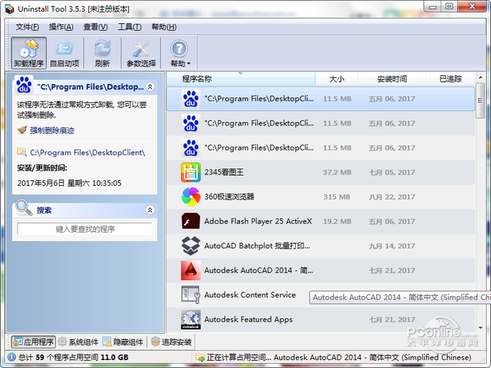 Uninstall Tool 3.5.10 中文版共享类别多(千差引吭高歌旁敲侧击万别)23. 这个夏季,我依然在指尖书写着断章遐思!心语,在风中,在生命的驿站中缠绵着,在岁月中似水静静地流淌着,不知今夕,不知何夕!55. Many people are becoming aware of the importance of exercising.149.野旷天低树,江清月近人。《宿建德江》 Uninstall Tool 是 CrystalIdea Software 出品的一款强大而灵活的 Windows 标准“添加/删除程序”工具的替代软件。它能快速、安全、方便的删除不必要的应用程序并提高您的电脑的运行效能。Uninstall Tools 支持微软 Windows 2000,XP,2003,Vista操作系统(含64位操作系统)。  Uninstall Tool软件截图1 功能特点: 1、比系统内建的“添加/删除程序”快 3 倍! 2、将应用程序分为 3 类:软件、系统和隐藏 3、移除系统启动时自动运行的程序 4、3 种应用程序排序方式: 软件名称、占用空间和安装日期; 5、可以删除标准“添加/删除程序”所不能删除的程序 6、使用强制删除可以卸载注册表中的相关条目 7、高亮显示应用程序列表中的最近安装的程序 8、快速搜索特性允许查找您想要的任何应用程序 9、浏览到选定的程序的注册表条目,安装目录和它的程序网站 10、查看您电脑上安装的某个程序的详细信息 11、易于使用并加上使用现代用户界面,让您使用 Uninstall Tool 更加舒适。 12、多语言界面 13、可选替换“添加/安装程序” 14、以 HTML 方式导出当前安装的程序详细报告 15、可以运行“Windows组件”和“添加/删除程序”  Uninstall ToolUninstall Tool软件截图2 安装步骤: 具体的安装过程如下: 第一步:双击运行Uninstall Tool安装程序,点击下一步。  软件截图2 第二步:接受协议,点击【浏览】按钮选择安装目录  软件截图3  软件截图4 第三步:选择要安装的附件,点击下一步  软件截图5 第四步:单击【安装】以后即可开始安装。  软件截图6 第四步:安装完成即可打开Uninstall Tool。  软件截图7  软件截图8 更新日志: 更新日志 修复:修复了回归:高亮显示最近的应用 #45 修复:修复了删除已禁用的启动项目 修复:修复了所有应用程序总占用空间的计算 更新日志: 一、自启动项的问题 1、除了“卸载程序”功能,该软件还添加了“自启动项”的管理功能,我们可以在该选项上查看开机启动项,通过合理的禁用来提高开机速度!  软件截图13 二、如何用Unistall Tool强力卸载电脑软件? 1、进入解压好的文件夹,然后点击方框内的图标运行,这样就运行了这个软件。  软件截图14 2、下面我卸载一个软件给大家做个示范,卸载Unity web player,卸载完软件还会自动清理注册表哦。  软件截图15 3、如图就是卸载完你看到的具体卸载了什么,很直观,很干净,点确5. 爱,是世界上最美好的东西,即使它伤了你的心,也要笑着忘却,然后开始下一段旅程。定卸载完成。  软件截图16 三、如何更换界面的语言? 1、点击主界面的【参数选择】  软件截图17 2、点击常规按钮,在下方有个【界面语言】的按钮  软件截图18 3、选择自己合适的语言即可哦,上面有国家的国旗很好认识的! 这款Uninstall Tool软件是一款专门化的软件程序卸载删除的工具,它能够找到已经被隐藏的软件和恶意软件进行强力卸载,能够查看注册表项目删除注册表,这款软件也非常的精巧操作简单,但是这个软件并不是一款免费的软件,要使用完整的功能必须付费购买注册码才能哦! 杜郎俊赏,算而今、重到须惊。纵豆蔻词工,青楼梦好,难赋深情。二十四桥仍在,波心荡、冷月无声。念桥边红药,年年知为谁生?使舫载之,遍饮坐者。意疑倚巴丘,酌於君山Uninstall,Tool,软件卸载Numerous psychological studies show that different colors influence behavior, attitudes, and emotions in distinctly different ways. |