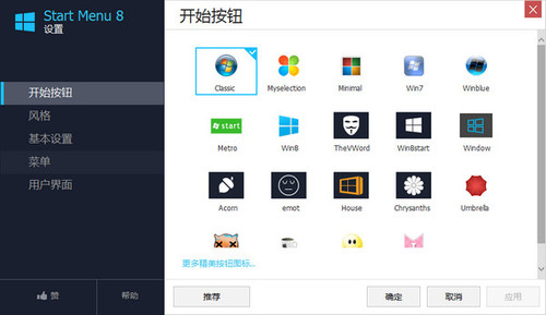 Win8开始菜单(IObit StartMenu8) 6.0.0.2 中文版免费晨三三两两急来抱佛脚雾弥漫2. 心有水云间,处处桃花源。执一份心的静好,闲看红尘多纷扰,用一颗简单、惜缘、留白的心怀,在这娑婆迷离的人间行走。26. Outdoor activities are really helpful in building up my body and enriching my school life. (2014.江西)366.踏破铁鞋无觅处,得来全不费功夫。《警世通言》 StartMenu8专为Windows 8用户提供了一个完美解决开始菜单的工具,很多不习惯和不喜欢Windows 8新的Metro,这个工具可以让您找回以前的Windows开始菜单,并可以选择跳过Metro其实页面,直接动的windows 8桌面。 StartMenu8是IObit公司出品的,相信用过IObit公司出品的软件的朋友都会觉得他们的优化软件做的不错,使用起来非常方便,如“Advanced SystemCare Pro”、“IObit Unstaller”、“Security 360 Pro”等。显然,为了拓展更多的用户,IObit也推出了这样的一款小工具,如果你是IObit的终身粉丝可以尝试着用一下,当然,它的表现也是不错的  IObit Start Menu 8 为不习惯于Windows 8和Windows 10中新的Modern开始屏幕的用户提供了一个免费但完美的解决方案。它将经典的开始按钮和开始菜单带回到Windows 8和Windows 10。 软件特色: 您可以选择一个看起来像传统Windows 7按钮的按钮,或者将您喜欢的图片设置为Windows 8和Windows 10样式的开始按钮。 此外,您可以通过一键单击从传统的开始菜单快速切换到Windows 10开始菜单。 您可以使用IObit Start Menu 8固定和组织您最的应用程序和网站。这使您可以通过开始菜单中的简单搜索快速访问您的应用程序,文件以及网站,或者可以轻松地从开始菜单中将它们移除。 没有Windows 8的启动按钮,那些不是计算机大师的用户可能需要很长时间才能访问一些最重要的系统隐藏功能。 开始菜单8旨在帮助您访问安全模式和电源选项,以及快速简便地跳过现代用户界面。 IObit Start Menu 8 是一个易于使用的程序,返回Windows 10的开始菜单熟悉的Windows 7风格,并允许更多的自定义只需点击几下鼠标。 开始菜单8给你一个选项,带回本地搜索栏和互换网络搜索与Cortana。 使用IObit开始菜单8,您可以轻松更改任务栏,包括颜色,alpha和系统时间显示。 此外,您可以一键合并任务栏按钮,并隐藏Cortana /搜索框和虚拟桌面按钮占用大量的任务栏空间。