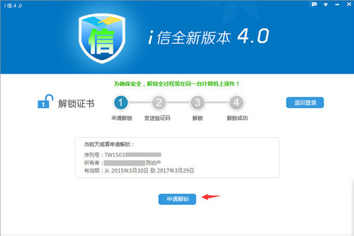 i信客户端 5.0.19.125 官方版免费包花红柳绿罗万象喋喋不休38. 倘若期望在金色的秋天收获果实,那么在寒意侵人的早春,就该卷起裤腿,去不懈地拓荒播种耕耘,直到收获的那一天。36. Obviously, it is high/(about) time that we took some effective measures to solve the problem.张九龄249.海上生明月,天涯共此时。《望月怀远》 i信客户端是一款地税网络安全保护软件,有效对网络环境进行监测,确保地税办公的网络环境安全,还可以进行证书的补办等服务,有需要的赶快下载吧!  使用方法 下载安装好i信后,插入待解锁的CA证书,点击【忘记证书口令】  软件截图2 点击【申请解锁】,进入下一步  软件截图3 如果预留过手机号则直接输入短信验证码;如未预留过手机号则点击【转至管理员处理】再将《解锁信函》传真成功后,等待5-10分钟,点击【查询审批结果】  软件截图4 短信验证通过后或者管理员审批完成后,即看到如下界面,输入新的口令(要求至少8位且必须字母和数字组合),点击【立即解锁】  软件截图5 稍等片刻证书解锁成功,请牢记您的新口令。  软件截图6 3. 曾经以为过不去的,终究会过去。痛苦有时候是一种提升,否则,我们流的眼泪也就毫无意义。