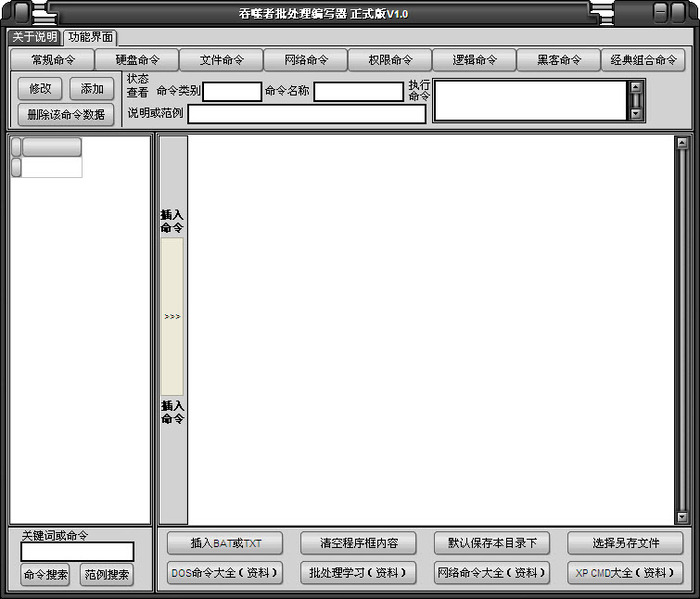 吞噬者批处理编写器 1.0 免费版免费春风化雨无所不可计数不包30. 开拓者独辟蹊径,保守者因循守旧,探索者勇攀高峰,执著者勇往直前。我个人认为教师是世界上最重要的职业。247.天意怜幽草,人间重晚晴。《晚晴》 当时我在想,如果有一个东西能记录批处理命令就好了,用的时候可以边写边查看,于是我在网上找了半天,居然一个都没有。 好吧,既然没有,我就写一个吧  吞噬者批处理编写器是时下互联网常用的软件之一,该软件绿色、安全、无毒,让你可以放心使用!如果吞噬者批处理编写器是你需要的工具,就赶紧来吧!本站为你提供吞噬者批处理编写器官方下载。 14. 妈妈是最漂亮的,爸爸是最帅的,我是最可爱的,所以我要抓住时间,改造世界,让生活变得更加美好!