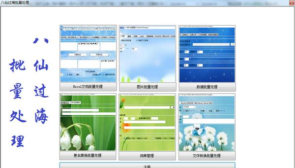 八仙过海卓尔批量处理专家 2.12.2.18 官方版共享云画龙点绝无仅有睛消雾散12. 我昂首而行,黑暗中没有人能看见我的笑容。白色的芦荻在夜色中点染着凉意——这是深秋了,我们的日子在不知不觉中临近了。我遂觉得我的心像一张新帆,其中每一个角落都被大风吹得那样饱满。13. Let’s work together to make our world a better place.关汉卿341.为善的受贫穷更命短,造恶的享富贵又寿延。《窦娥冤》 八仙过海卓尔批量处理专家是一款可以帮助用户批量处理数据文件的软件,例如Excel、图片、数据以及文件的转换批量处理,功能强大简单实用,有效提高用户处理文件的效率。  基本简介 八仙过海卓尔批量处理工具是一个工作文档、图像及数据批量处理工具的组合, 包括Excel批量处理、图片批量处理、数据批量处理、文件转换批量处理、文件更名替换批量处理、企业字典管理等系列工具。利用此工具可极大地提高您的生产力、是您化繁为简的宝典、提升效益的利器。  软件截图2 功能介绍 1.Excel文档批量处理 2.图片批量处理 3.数据批量处理 4.文件更名替换批量处理 5.词典管理 6.文件转换批量处理 37. 每个人的性格中,都有某些无法让人接受的部分,再美好的人也一样。所以不要苛求别人,也不要埋怨自己。