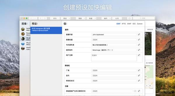 MetaImage 1.9.7 正式版免费百花荒山野闻名遐迩岭齐放27. 牙齿掉了不会再长回来,一个合适的发型胜过无数名牌包包,你的智慧比任何名贵手表都使人印象深刻。把你拿来买奢侈品的钱首先用来好好保养你的牙齿、皮肤和身体,吃好些,多读书,多点去外面走走看看,尽量每天做运动。我非常乐意帮忙。358.天下大势,分久必合,合久必分。 MetaImage Mac版是Mac平台上的一款读取、写入和编辑图像元数据的终极工具。25. 别说一辈子,别说永远,谁能对未来承诺呢?我们能把握的,无非是当时当地的感情。但一辈子,也是无数个现在组成的,努力好了每个瞬间,也就是永远了。MetaImage Mac版是首款采用了用户熟悉并且精美的界面来编辑 EXIF、IPTC 和 XMP 标签以及 MakerNotes 的编辑器。  软件特色 MetaImage Mac版旨在改进用户的工作流。用户可以创建并管理预设。此外,应用内还针对地理和缩略图数据提供了特别支持。而且,显示的标签还可以通过偏好设置来定制。所以,此应用适用于满足您的个人需求。  软件截图2 MetaImage与您的Mac生态系统完全整合。此应用甚至还包括了照片扩展插件。因此,您可以从照片应用直接读写标签。  软件截图3 应用旨在服务于专业的需求。支持超过90种图像格式(MOS, CR2, DNG, NEF, NRW, JPEG, PNG, TIFF, RAW等等)。MakerNotes的标签可以编辑但不能创建或删除。这可以避免由OEM软件导致的诸多问题。  软件截图4 - 将标签导出为CSV和JSON - 导出嵌入的缩略图 - 从raw导出嵌入的jpeg - 复制/粘贴多个标签 - 支持密码保持的图像 - 支持通知和触摸栏 无情不似多情苦,一寸还成千万缕。天涯地角有穷时,只有相思无尽处。间关莺语花底滑,幽咽泉流水下滩。MetaImage,Mac版,MetaImage,Mac版下载,图像处理,图形图像22.Call back white and white back. 颠倒黑白。 |