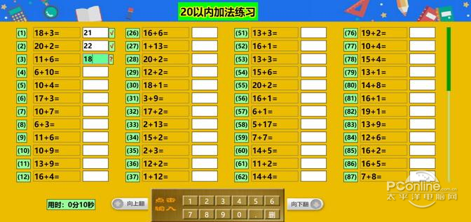 这100道题,从开始计算会进行计时,看你计算这100道题共用时多长时间,和过去的用时进行对比,看有没有越算越快,有没有进步。