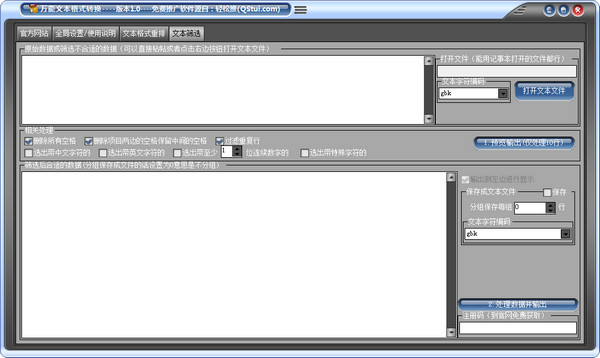 轻松推万能文本格式转换器 1.0 免费版免费绰绰一身正气有画龙点睛余28. 如果不爱你能够让你幸福,那么我就只是喜爱你。”I wonder if / whether 我不知道是否……;it is convenient (for sb) to do sth (某人) 方便做某事;join sb in doing sth 和某人一起做某事崔颢178.昔人已乘黄鹤去,此地空余黄鹤楼。黄鹤一去不复返,白云千载空悠悠。晴川历历汉阳树,芳草萋萋鹦鹉洲。日暮乡关何处是,烟波江上使人愁。《黄鹤楼》 轻松推万能文本格式转换是一款多功能的文本格式处理软件,轻松推万能文本格式转换可以把你的帐号列表转换格式用来导入群.发软件等等。  功能介绍 轻松推万能文本格式转换主要功能: 1、文本格式重排 (文本转换 功能1); 2、文本筛选 (文本转换 功能1); 3、万能格式处理(每一行的内容不太一致也能搞定),万能格式输出。  软件截图2 23. 分手时不需要挽留,你只需要证明没有他(她)以后你过得更好就行。
