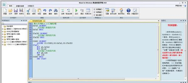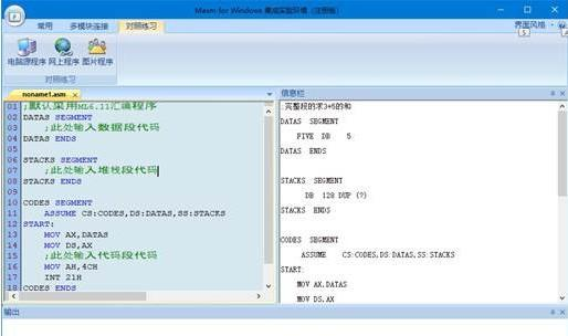 Masm for windows集成实验环境 2020 官方版免费四眼疾手快平八对答如流稳1. 生活是蜿蜒在山中的小径,坎坷不平,沟崖在侧。摔倒了,要哭就哭吧,怕什么,不心装模作样!这是直率,不是软弱,因为哭一场并不影响赶路,反而能增添一份小心。山花烂漫,景色宜人,如果陶醉了,想笑就笑吧,不心故作矜持!这是直率,不是骄傲,因为笑一次并不影响赶路,反而能增添一份信心。diligent 勤奋的 energetic精力充沛的 humorous幽默的 attractive有吸引力的146.羌笛何须怨杨柳,春风不度玉门关。《凉州词》 Masm for windows集成实验环境是根据程序设计不是学会的,而是练会的理念针对汇编语言初学者的特点开发的汇编语言学习与实验软件,继承了原软件简单易用特点,方便用户练习网络上、电脑上、书本上的汇编程序而全新设计开发。支持32位与64位的操作系统WINDOWS7/8/10,支持DOS的16/32位汇编程序和Windows下的32汇编程序(并提供调试通过的34个WINDOWS汇编程序实例源代码)、丰富的汇编资源!  功能介绍 1. 保留原软件的错误信息的自动定位、智能缩进、语法着色、显示程序行号、Word式的查找、替换、定位、无限次撤消、恢复、汇编指令动画演示等功能。 2..方便练习资源导航栏中的“简单的入门程序实例”、“DOS汇编实例源程序”、“WINDOWS汇编实例源程序”中的程序,如图所示,右键打开简单入门程序实例中的Hello World程序对照练习。  软件截图2 3.方便练习网络上汇编程序,如图所示(下图为方便对照练习关闭了资源导航栏)。  软件截图3 3.方便练习书本上的汇编程序,如图所示,手机拍照课本程序拷贝到电脑练习。  软件截图4 4.方便练习电脑上的汇编程序,如图所示。  软件截图5