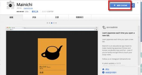 mainichi(日语学习扩展插件) 0.0.13 官方版免费抱薪俯首帖耳救火堂堂正正不要去想它,感受它就通了。人生有所求,求而得之,我之所喜;求而不得,我亦无忧。若如此,人生哪里还会有什么烦恼可言?我们永远都不会忘记在一起度过的日子。181.丹青不知老将至,富贵于我如浮云。《丹青引赠曹将军霸》 Mainichi是一款用于学习日语,中文,韩语的Chrome、Firefox 扩充插件,每次打开一个新标签页就显示一张图,配以日文、韩文、中文,显示用来学习,让我们可以透过图像来加深对单词的印象。  软件特色 1.显示内容包括日文,拼音,汉字,韩文与英文。 2.以图文内容加深对单词的印象 3.每次打开浏览器或新增分页时显示单词图文,让您把握机会学习新的单词 使用方法 1.安装好插件  软毁于一旦拼音:huǐ yú yī dàn释义:于在;一旦一天。在一天的功夫全被毁掉。多指长期劳动的成果一下子被毁掉。出处:《后汉书·窦融传》百年累之,一朝毁之。”示例:百余年辛苦经营的圆明园,~,更是令人椎心泣血的莫大恨事。★高阳《清宫外史》下册件截图2 2.开启分页时,就可以看到一张随机出现的图卡。预设为日文语系,会显示日文,英文,拼音,如果该单词有汉字也会一并显示,想多学几个的话,只要重新整理网页就会出现其他的单词图卡。  软件截图3 3.点击左下角的按钮可展开选单,就可以改变语系为中文或者韩文了  软件截图4 遨头小簇行春队,步苍苔、寻幽别墅,问梅开未?重唱梅边新度曲,催发寒梢冻蕊。此心与东君同意,后不如今今非昔,两无言相对沧浪水,怀此恨,寄残醉。062杜甫:寄韩谏议mainichi(日语学习扩展插件),mainichi(日语学习扩展插件)下载,外观插件,网络工具Too much emphasis placed on (attention paid to / importance attached to) … may obscure (overlook / neglect) other facts… |