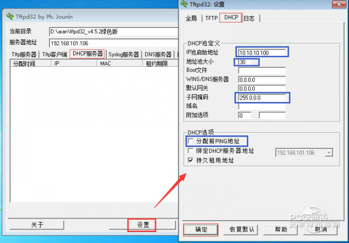 问 tftpd32怎么设置dhcp? 答:1.DHCP服务器配置,例如分配10段的网络  软件截图11 2.设置好路径和ip即可  软件截图12 小编推荐的这款Tftpd32是一个集成多种服务的袖珍网络服务器包,同时能够提供TFTP客户端应用,支持tsize, blocksize 和 timeout等等。这款软件缩写版tftp,全称为Trivial File Transfer Protocol,中文名翻译为简单文件传输协议。大家可以从它的名称上看出,它主要针对传送“简单”的文件。与FTP不同的是,它是使用的UDP的69端口,可以穿越许多防火墙。不过它也有一些小小的缺点,比如说传送不可靠、没有密码验证等。虽然有点不足的地方,但是它还是很适合传送小型文件的哦。 销魂、当此际,香囊暗解,罗带轻分。谩赢得青楼、薄倖名存。此去何时见也?襟袖上、空惹啼痕。伤情处,高楼望断,灯火已黄昏。州边鄙而退,岂力能制敌欤?盖蒙其伤怜而已!诸史何为忍苦征敛!故作诗一篇以tftp服务器下载,ftp软件下载,tftp服务器软件,tftp超级终端80、Give as good as one gets. |