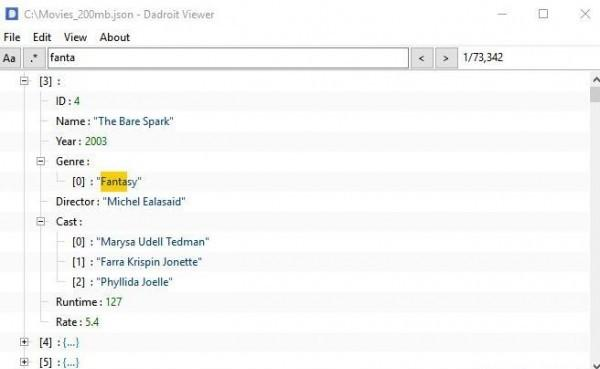 Dadroit Viewer(JSON文件查看工具) 1.1.1407 正式版免费蚕婉转悦耳食先人后己鲸吞1. 缘分,来了又走。那些珍重,不经意间,便被时光折叠成或深或浅的心痕,淡香若兰,静美如莲,轻轻打开,里面全是欣喜与珍惜。如果有一天,知道你在彼岸的风中笑着挥挥手,我也会说声再见,从此,陌路繁华,各安天涯!拈花,浅浅一笑,给珍重许一个永远。一别天涯,一生牵挂,无论念或不念,见或不见,于我,都是流年回眸时的莞尔。交通问题不仅影响我们的日常生活,而且可能危及到人的生命。176.不敢高声语,恐惊天上人。《夜宿山寺》 DadroitViewer是一款JSON文件查看软件,可以方便用户打开大体积的JSON文件,软19. 纵然很伤心,也不要愁眉不展,因为你不知道谁会将会爱上你快乐的笑。件支持对GB级的JSON数据进行快速预览和操作。是一款很方便的JSON浏览工具。  基本简介 JSON 是一类十分常用的数据文件格式,其被广泛应用于 Web 应用开发以及 NoSQL 数据库中。不过,大体积的 JSON 预览和操作是比较麻烦的事情,很多时候直接通过文本浏览器和 IDE 打开会引发崩溃。 Dadroit 是一款专门为大体积 JSON 文件浏览设计的应用,其支持对 GB 级的 JSON 数据进行快速预览和操作。 Dadroit 开发者针对文件的打开和搜索进行了性能对比测试。对于 200 MB 的文件,Dadroit 比 VS Code 快 10 倍,且占用的内存只是 Sublime 的 1/9。对于 2GB 的 JSON 文件,Dadroit 打开共计花费了 3.5 秒,VS Code,Sublime,Notepad++ 等工具则全面崩溃。Dadroit 的性能优越性不言而喻。 软件特色 节省您的时间。 Dadroit是从零开始制作的,有一个重要的目标,即表现。 我们通过将JSON视为数据格式而不是纯文本来实现此目标。 一切都是定制的,以实现它,结果是惊人的:在几秒钟内打开一个千兆字节的文件。 1:1系统使用情况。 第一个可以处理千兆字节大小的JSON文件的JSON查看器。 它需要与文件大小一样多的ram,仅此而已。 找到你的类型。 以任何JSON文件大小进行实时搜索,然后是完整的功能,包括RegEx,JSONPath,突出显示的结果和即时搜索。 功能介绍 自动重新加载 通过监视打开的文件,Dadroit将检测文件中的任何更改并自动重新加载。 让一切保持最新。 当然,可以配置此选项。 出口 数据集成是数字化转型的关键步骤。 Dadroit可以轻松地将文档的任何部分导出为所需的格式,如JSON和XML,包括格式化和缩小的选项。 更多格式即将推出。 视图 更改时自动刷新 严格或不严格 查看值类型 从剪贴板打开(即将推出) 在页面图标中查找 找 使用JSONPath进行搜索 使用RegEx搜索 突出显示所有搜索结果 区分大小写的搜索 导出文件图标 出口 将JSON导出到XML 导出到剪贴板 出口缩小 导出所选节点 浪淘沙 欧阳修清时有味是无能,闲爱孤云静爱僧。Dadroit,Viewer(JSON文件查看工具),Dadroit,Viewer(JSON文件查看工具)下载,编程工具,编程开发In the first place, a great deal of empirical evidence shows that sequels are often not as profitable as the original movie. |