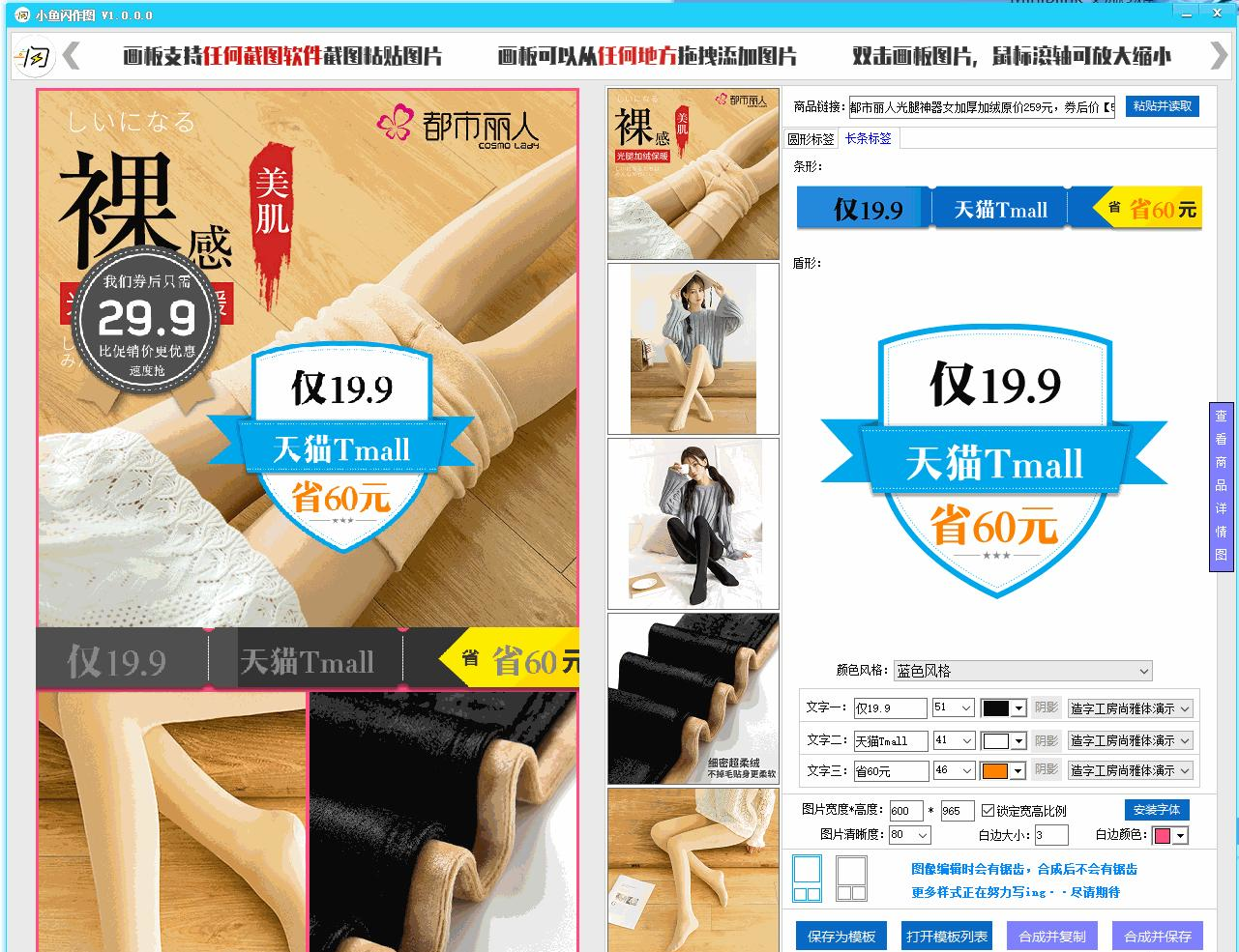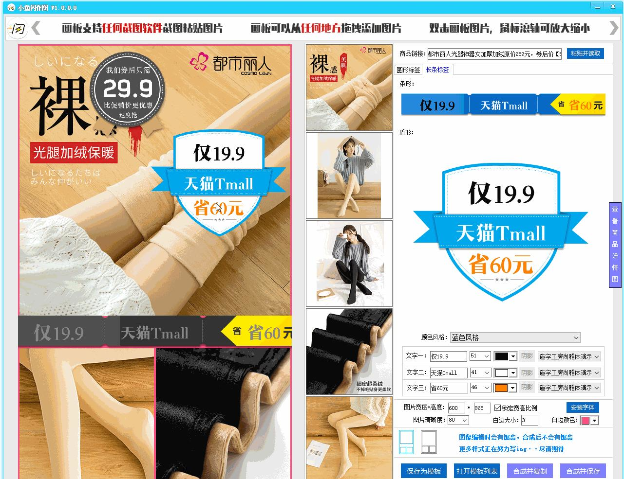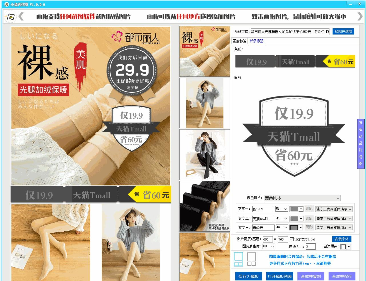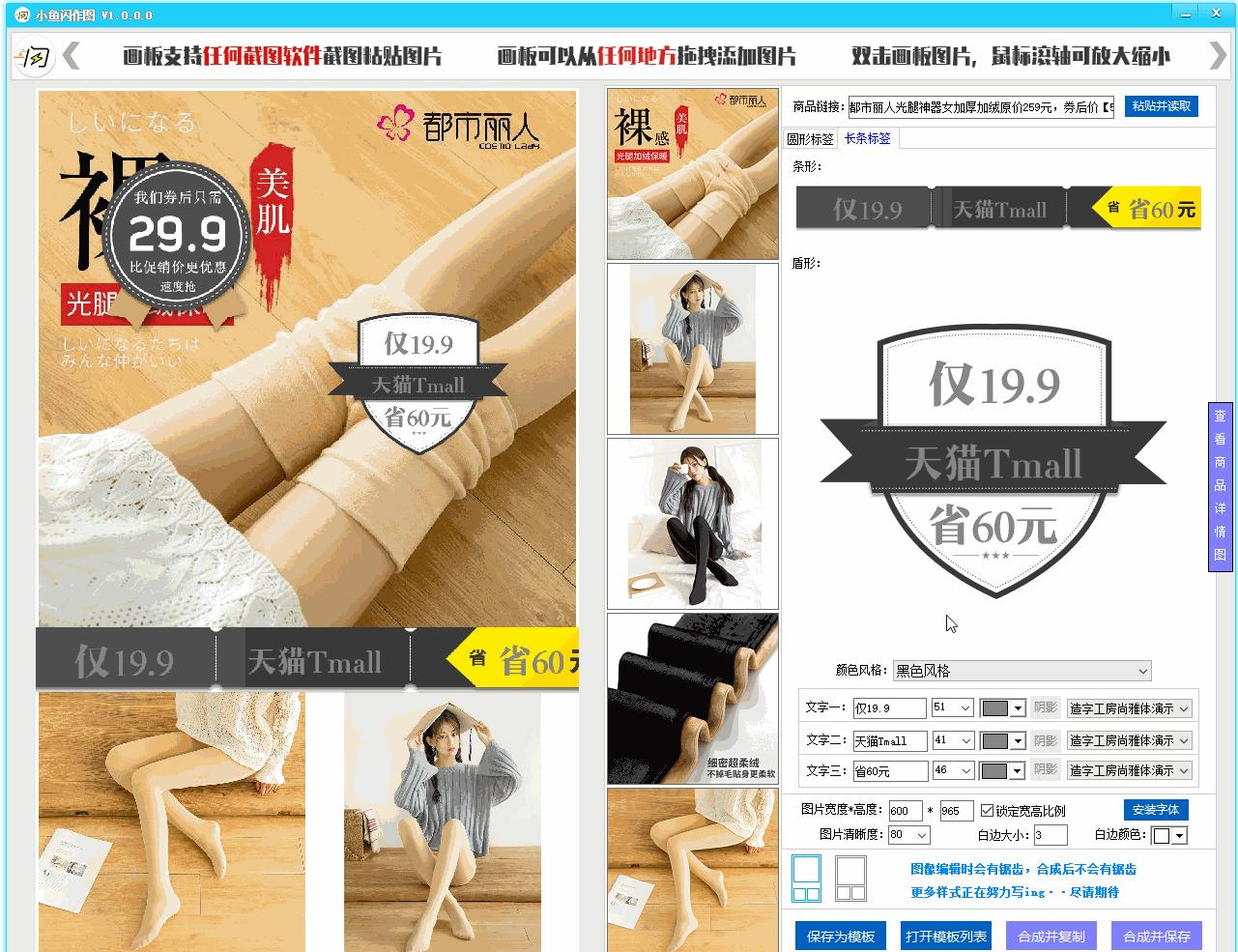 小鱼闪作图 1.0.0.0 正式版免费垂头丧气惊慌失湖光水色措31. 海浪不回避礁石的撞击,才得以壮观;人生不拒绝遗憾的存在,才得以明达。在线投票越来越盛行,很多比赛都让人们参与进来投票。柳永271.衣带渐宽终不悔,为伊消得人憔悴。《凤栖梧》/《蝶恋花》 小鱼闪作图是一款招商淘客作图神器,能够急速闪电作图,本软件仅不到3M大小,用了易语言自带的画板写的,完全的所见即所得,作图的时候,会有锯齿感,但合成后是没有的!  功能介绍 软件开启,会有软件的更新日志,右上角关闭即可。 右上角:可以粘贴商品链接,会自动识别商品id,取出该商品的5个主图,拖拽到画板即可~~  软件截图2 点击圆形标签,或者条形标签,可以将标签添加到作图区中,在作图区选中标签可以移动它~  软件截图3 在作图区选中标签,滚动鼠标滚轴,可以自由放大缩9. 当爱情不在的时候,请对他说声祝福,毕竟,曾经爱过。小标签~  软件截图4 可以自由选择标签的颜色风格~小提示:鼠标悬浮在选择框上面,滚动鼠标滚轴,可以快速选择~所有选择框都可以这样的哦~  软件截图5 想用哪个标签,就对着哪个标签,调相应的参数就好了 软件内置了两个漂亮的字体,不再采用系统内部字体,因为系统字体大部分不好看, 要安装自己的字体,请点击:安装字体 PS:win7系统不支持.otf字体。win10的话就没问题。  软件截图6 单击右边的:查看商品详情图,可以查看到该商品的所有详情图片,当5个主图不好看时,可以用详情图里的图片。 支持任何截图软件,截图后,粘贴到作图区。也可以从任何地方拖拽到作图区  软件截图7 可以调整外边框的大小和颜色,可以调整合成的图片质量,和图片宽高,尽量还是把:锁定宽高比 勾上,要不然合成的图片可能会变形  软件截图8 双击作图区的图片,可以进入编辑~鼠标左键按下,可以拖动它,鼠标滚轴可以缩小放大它~厉不厉害 点击黑色幕布,或者回车键,可以确认编辑~  软件截图9 点击作图区的标签后,键盘的上下左右键,可以移动标签,方便微调距离~  软件截图10 更新日志: 小鱼闪作图V1.0.0.0正式版[2019/1/19] 1.正式发布 2.优化内部图像合成逻辑,优化编辑图像逻辑 3.参数设置自动保存,重启软件后,参数设置依然是上次的设置 4.新增一种图片的样式,未来将增加更多图片样式 5.新增一种盾型标签 6.新增图片拖拽功能,可以从任何地方拖拽图片到图片合成区 7.新增设置图片白边颜色,大小的功能 8.新增设置合成图片的尺寸功能,让用户可以适应各个平台的规则 9.新增设置合成图片的清晰度,越清晰,图片文件会越大 10.新增快速选择文字的功能,不再选择系统字体,具体请看软件内置教程 11.新增查看商品详情图功能,可直接拖拽,也可以直接用任何截图工具截图,粘贴到作图区 12.新增图片合成区图片编辑的功能,添加到图片合成区的图片,双击后,可以进入编辑,鼠标滚轴可以放大缩小图片,左键按住图片可以移动图片位置 13.适应所有大小的显示器,显示器越大,作图区越大,作图更爽! 14.即将增加模板功能,合成的图片可以存为模板,下次可以直接拿来编辑就ok了 本功能实现有些复杂,等下个版本再上线吧~~ 修竹凝妆,垂杨驻马,凭阑浅画成图。山色谁题?楼前有雁斜书。东风紧送斜阳下,弄旧寒、晚酒醒馀。自消凝,能几花前,顿老相如?年年越溪女,相忆采芙蓉。小鱼闪作图,小鱼闪作图下载,图像处理,图形图像80、Give as good as one gets. |