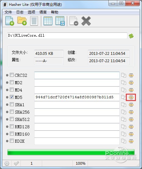 加载文件后,就可以看到该文件的MD5值