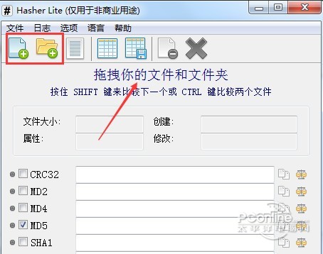 你可以加载一个文件,那么Hasher lite将生成文件夹内所有文件的哈希值,并能将结果导出为文件保存