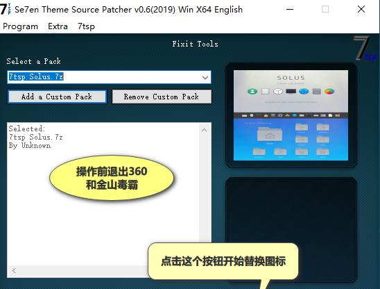 Se7en Theme Source Patcher 0.6 免费版免费大九牛二虎之力雾迷途团结友爱29. 就这样也好,于缘分中邂逅,也于缘分中结束。在这个秋天,再次捡拾一枚红叶,写下过去的哀怨情愁,画下西风瘦,美人半卷帘,让秋风带带到梦的远方,也许那是最好的归宿。(Not only …but also…)、(Because…)、(because of…)、(As long as…)、(so long as…)277.梨花院落溶溶月,柳絮池塘淡淡风。《寓意》 Se7en Theme Source Patcher简称7TSP GUI工具,是一款专门用于更改WIN10系统的系统图标软件,通过软件能够快速的更换自定义的系统图标,无论是从网上下载的还是自己做的都可以利用软件进行更换,从而达到个性化电脑的目的,有需要的可以下载使用。  功能介绍 自定义更换系统图标 支持快速还原已更换图标 仅支持WIN10系统 使用方法 点击Add a Custom Pack(如下图)  软件截图2 找到你下载的7tsp图标(.7z文件),选择后打开(如下图)  软件截图3 图标加载成功后点击Start Patching开始替换图标(如下图)  软20. 人生没有彩排,每天都是直播;不仅收视率低,而且工资不高。件截图4 弹出窗口点是(如下图)  软件截图5 稍等片刻,左侧会自动列出替换过程(如下图)  软件截图6 替换完毕后,提示重启电脑,点是,重启电脑(如下图)  软件截图7 重启后图标就替换成功了,如果部分图标无效,请点击Program C Clear Icon Cahe,刷新图标缓存(如下图)  软件截图8 如果你想还原图标,请再次运行7tsp,点击 Restore(如下图)  软件截图9 弹出选择窗口,点击OK即可 稍等片刻,重启电脑即可还原成功, 情愁忧患都说尽,烟柳浮云始作闲。世界微尘里,吾宁爱与憎。Se7en,Theme,Source,Patcher,Se7en,Theme,Source,Patcher下载,其它工具,应用工具30.Beauty will buy no beef. 漂亮不能当饭吃。 |