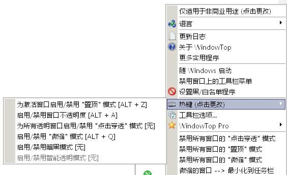 WindowTop(窗口管理增强工具) 5.5.4.0 官方版免费豁达杯生机勃勃水车薪大度29. 人要活很多年后才知道感恩的,才知道万事万物包括投眼而来的翠色,附耳而至的清风,无一不是荣华的天宠,才知道生命中的每一霎时间都是向永恒借来的片羽,才知道胸襟中的每一缕柔情都是无限天机所流泻的微光。对于该问题的看法因人而异。42.知之为知之,不知为不知,是知也。 WindowTop是一款Windows上使用的窗口管理增强工具,支持Win7及以上系统,将当前窗口设置在顶部,使其变暗,应用透明性,缩小它,等等!  功能介绍 WindowTop 基础功能 窗口置顶 正如其名,WindowTop 最主要的功能就是让 Windows 任意窗口始终置顶。 默认情况下,我们让 WindowTop 在后台工作后,在普通应用的窗口上方就可以看到一个下拉按钮,鼠标悬停就可以看到 WindowTop 的三种功能按钮,其中中间的按钮就是「窗口置顶」功能。我们点击按钮就可以让这一应用的窗口始终置顶于最上方,实现类似于将窗口「钉」在桌面上的效果。 将 To Do 应用「钉」在窗口最前面 对于需要对照某个应用内容进行工作,或者需要频繁在某些应用窗口间进行切换,使用 WindowTop「窗口置顶」来将窗口钉在桌面最上方的功能确实非常实用47. 我喜欢春天的花,夏天的树,秋天的黄昏,冬天的阳光,还有每天的你。。比如我们往往可以将 To Do 工具、备忘录、番茄时钟或者其他频繁使用的应用来固定置顶,从而更方便快捷地投入工作,不必在多个窗口之间反复横跳。 设置窗口透明度 WindowTop 另外一个重要的功能便是对任意窗口「透明度」的设置。对于一些开发者来说,「透明的代码编辑器」无论是从美观的角度,还是对于预览编译运行程序的实时效果角度来说,都是一个 nice-to-have 的特性。不过并不是所有的 IDE、终端都直接支持「透明」或「半透明」窗口的配置。 WindowTop 在 Windows 上可以直接对任意程序窗口的透明度进行设置,强制让其拥有「背景透明」的效果,我们用上面提到的下拉菜单中的第一个按钮即可对窗口的透明度进行调整。 设置 VS Code 为半透明窗口 另外,不光是开发者编写代码的使用场景,其他用户需要在小屏幕上同步预览两个窗口的时候,也可利用 WindowTop 的「透明窗口」功能有效提升屏幕利用率。 窗口点击穿透 在「设定窗口透明度」按钮下面,就有「点击穿透」的功能开关。WindowTop 除了可以设定某个窗口为半透明窗口,还可以让窗口直接「无视鼠标点击」,让其成为前景中的一个半透明遮罩,这样我们就可以在前面对某个窗口进行操作,而不影响后面窗口的显示。 这样的功能在下面演示动画 GIF 中这种「绘画临摹」的使用场景下非常有用。 新型窗口「最小化」 将窗口最小化为「缩小版」预览窗口 WindowTop 支持全新的「窗口最小化」特性 ―― 将窗口缩小为缩略图的样子,而不直接缩小至任务栏里面。我们点击应用窗口上面下拉工具栏里的「Shrink」,即可缩小窗口并将其置顶。 利用视频窗口的「WindowTop 最小化」实现 Windows 画中画功能 利用这一功能我们甚至可以将正在播放的视频全屏,并将全屏窗口进行「最小化」,从而实现 Windows 上面的「画中画」模式。(不过遗憾的是这一功能在免费版本里面比较局限,想要体验完整的任意窗口「画中画」,还需要购买下文介绍的 WindowTop Pro。) 窗口强制深色 虽然目前 Windows 10 已经支持了完整的「暗色主题」,并且一部分应用也已经适配了暗黑深色的主题功能,不过还是有部分老旧顽固软件尚未适配深色主题。针对这一类古老的软件,我们实际上可以用 WindowTop 来强制将软件显示的演示进行反转。我们点击前文提到的应用窗口上面下拉工具栏里的「Set Dark」,即可将软件强制色彩反转。虽然这种处理方法对于部分软件的实现还是不算完美,会出现「穿帮」的情况,但是在全黑的暗色主题下使用 WindowTop 的这一功能还算是比较能够实现部分需要的。  软件截图2 快捷键位 将窗口设置在顶部[ALT+Z]。 将窗口设置为透明[ALT+A]。 激活当前窗口的Aero功能(无默认热键)。 将窗口设置为暗色(无默认热键)。 点击透明窗口 缩小窗口,而不是最小化[ALT+Q]。 将窗口设置为暗色[ALT+W]。 阑干倚尽犹慵去,几度黄昏雨。晚春盘马踏青苔,曾傍绿阴深驻。落花犹在,香屏空掩,人面知何处?问客何为来,采山因买斧。WindowTop(窗口管理增强工具),WindowTop(窗口管理增强工具)下载,系统辅助,系统工具6.Slow and steady wins the race. 稳扎稳打无往而不胜。 |
