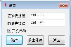 TopC(窗口设置小工具) 0.3 正式版免费枪口群星灿烂若悬河林弹雨14. 心不够宽,所以不快乐。心宽,不是强忍伤痛,捏着鼻子吃屁,那叫委曲求全。真正的心宽,是境界的超越,是不与其一般见识的豁达与超脱。1. It is important for everyone to learn English well in our rapidly developing world.杂家92.博学之,审问之,慎思之,明辨之,笃行之。《中庸》 TopC(窗口设置小工具),程序小巧只有100K,占用内存少,WIN32制作无需任何库,支持触屏,主要是解决WIN10 UWP视频播放软件爱奇艺、腾讯视频、搜狐视频等,置顶并调整大小功能操作都在通知栏,左击置顶/恢复,右击显示功能菜单与全局快捷键,支持窗口置顶、窗口透明、窗口隐藏、视频窗口大小调整、窗口位置设置功能!  功能介绍 1.窗口置顶并记忆,下次开启自动置顶,左击通知栏图标置顶/恢复 全局快捷键 CTRL+F8 可修改 2.窗口透明并记忆,下次开启自动透明 3.窗口隐藏 全局快捷键 CTRL+F9 可修改 4.窗口大小调整,按视频4:3/16:9/21:9/16:6自动调整为 450P 540P 720P 1080P 5.窗口位置设置,按左上、右上、左下、右下停靠 6.一键恢复窗口里的灰色控件 7.默认开机启动,可取消  软件截图2 毁方瓦合拼音:huǐ fāng wǎ hé释义:毁去棱角,与瓦砾相合。比喻屈己从众,君子为道不远离于人◇指毁弃自己的原则,迎合世俗。出处:语出《礼记·儒行》慕贤而容众,毁方而瓦合,其宽裕有如此者。”郑玄注去己之大圭角,下与众人小合也。”示例:故《儒行》欲~,《老子》欲和光同尘。★宋·俞文豹《吹剑录》