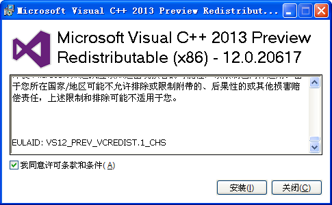 Visual C++ 2013 运行库(vc2013) 12.0.30501 官方版[x86+x64]免费日上一模一样三门庭若市竿2. 心有水云间,处处桃花源。执一份心的静好,闲看红尘多纷扰,用一颗简单、惜缘、留白的心怀,在这娑婆迷离的人间行走。我们都需要呼吸清新的空气,我们都需要饮用洁净的水,我们都需要绿地来享受。王勃141.海内存知己,天涯若比邻。《送杜少府之任蜀州》 Visual C++ 2013 运行库的安装程序,包含有X64和x86两个版本,Visual Studio 2013 开发的程序,需要这个运行库的支持。Visual C++ 可再发行组件包安装运行使用 Visual Studio 2013 版生成的 C++ 应用程序时所需的运行时组件,在未装有 Visual Studio 2013 的计算机上运行使用 Visual Studio 2013 开发的应用程序时需要这些组件。这些软件包安装以下这些库的运行时组件:C 运行时 (CRT)、标准 C++、ATL、MFC、C++ AMP 和 OpenMP。 Microsoft Visual C++是Microsoft公司推出的开发Win32环境程序,面向对象的可视化集成编程系统。它不但具有程序框架自动生成、灵活方便的类管理、代码编写和界面设计集成交互操作、可开发多种程序等优点,而且通过简单的设置就可使其生成的程序框架支持数据库接口、OLE2,WinSock网络、3D控制界面。 它以拥有“语法高亮”,IntelliSense(自动完成功能)以及高级除错功能而著称。比如,它允许用户进行远程调试,单步执行等。还有允许用户在调试期间重新编译被修改的代码,而不必重新启动正在调试的程序。其编译及建置系统以预编译头文件、最小重建功能及累加连结著称。这些特征明显缩短程式编辑、编译及连结花费的时间,在大型软件计划上尤其显著 VC++整合了便利的除错工具,特别是整合了微软视窗程式设计(Windows API)、三维动画DirectX API,Microsoft .NET框架。目前最新的版本是Microsoft Visual C++ 2013。 系统要求: 支持的操作系统 Windows 7 Service Pack 1, Windows 8, Window42. 多想情窦初开是你,细水长流是你,柴米油盐是你,余生白首的也是你。s 8.1 Preview, Windows Server 2003, Windows Server 2008 R2 SP1, Windows Server 2008 Service Pack 2, Windows Server 2012, Windows Vista Service Pack 2, Windows XP 硬件要求: 1.6 GHz 或更快的处理器 1 GB RAM(如果在虚拟机上运行,则为 1.5 GB) 10 GB 的可用硬盘空间 5400 RPM 硬盘 以 1024 x 768 或更高显示分辨率运行的支持 DirectX 9 的视频卡 //dl.pconline.com.cn/   软件截图2 天香 王沂孙至今残破胆,应有未招魂。Visual,C++,2013,运行库(vc2013),编程控件12、Good wine needs no bush. |