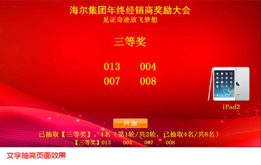 网成科技全能抽奖软件支持文字抽奖、图片抽奖,界面完全自定义。为绿色软件,免安装,下载后解压到电脑上既可以使用,设置好后直接复制到其他电脑上就可以直接使用。 1.支持由数字、字母、中文汉字混合的姓名、手机号、身份证号等各种名单;2.支持图片照片抽奖;3.支持隐私保护,可屏蔽部分字符(如手机号13306667777,屏蔽部分字符后133****7777);4.支持抽奖名单一键打乱;5.支持抽奖名单一键去除重复数据;6.支持可选择重复/不重复中奖;7.支持全屏显示/任意尺寸显示,支持分屏显示,支持LED大屏幕;8.支持激光笔抽奖,支持抽奖按钮;9.支持软件自动运行;10.支持自动生成编号,可自动删除不想出现的数字,支持从TXT或Exlce中导11.入抽奖人员,支持抽奖名单补空格使长度相同;12.支持中奖名单显示、打印、下载、保存,中奖显示页面自定义设置;13.支持抽取结果页面显示或字幕显示;14.支持智能记忆功能,不怕断电、死机等,出现异常情况重新运行软件后可接着抽奖;15.支持作废中奖名额、补抽空缺名额功能,若抽奖过程中没有人领奖,可以按弃奖处理,重新补奖抽取;16.支持自定义界面,界面所有部件(标题、中奖人等)的字体大小、文字、颜色、位置、背景等都可手动或自动调整;17.支持同屏多个号码(文字)滚动抽取,可自定义每次同时出奖人数(同时出奖人数任意个,同时滚动人数任意个);18.支持特殊内定功能;19.支持界面改变后自动保存功能;20.支持自定义抽奖音效;21.支持抽奖日志记录,每次抽取结果都保存在抽奖日志记录文件中。 网成科技全能抽奖软件 4.0.0.5 更新内容 1.支持鼠标拖拽排版2.支持抽奖名单一键打乱;3.支持抽奖名单一键去除重复数据;4.支持鼠标拖拽排版。  网成科技全能抽奖软件 4.1.0.9 正式版 更新内容 优化图片抽奖滚动速度  更新日志: 增加抽奖名单多列显示功能 电子表格导入多列数据功能 抽奖结果静止显示功能 可导出所有状态名单功能 可以添加MP3格式音乐 天门谣 贺铸永夜角声悲自语,中天月色好谁看?网成科技全能抽奖软件,办公工具19、Zeal without knowledge is a runaway horse. |
