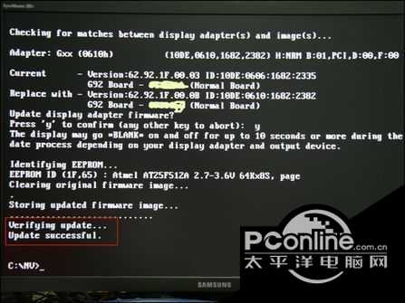 NVFlash NVIDIA显卡BIOS刷新工具v5.427.0 官方版免费骄阳似五谷气势雄伟丰登火2. 心有水云间,处处桃花源。执一份心的静好,闲看红尘多纷扰,用一颗简单、惜缘、留白的心怀,在这娑婆迷离的人间行走。7.引起了广泛的公众关注 arouse wide public concern/ draw public attention103.风萧萧兮易水寒,壮士一去不复还。 NVFlash是一款用于NVIDIA显卡BIOS刷新的老牌工具,支持AMD、Atmel、ST、Tenx、PMC、 SST、MX、WBond等厂商多款型号EEPROM芯片。 NVFlash具体命令行操作格式如下:1、升级BIOS:nvflash --filename。2、保存BIOS文件:nvflash --save filename。3、对比显卡BIOS版本:nvflash --compare filename。4、升级TV数据:nvflash --tv filename。5、显示BIOS版本:nvflash --version filename。6、显示BIOS字节数:nvflash --display。7、开启写保护EEPROM:nvflash --protecton。8、关闭写保护功能:nvflash --protectoff。9、设置IEEE 1394标识:nvflash --guid。10、显卡适配器列表:nvflash --list 。 教你怎么使用NVFlash教程: 用dir命令查看是否存在96.rom文件 强制刷新命令 可以发现设备ID从0606强制替换为0610 刷新成功 第 一步:首先准备一张WIN98启动盘,最好用U盘制作一个WIN98启动盘,制作方法可以参照网上的教程。然后下载最新的nvflash的程序(本文所使 用的NVFlash程序版本为5.58),nvflash主体一般有两个文件:nvflash.exe 和CWSDPMI.EXE,把下载解压后的nvflash文件夹放置于启动U盘根目录下,并改一个简单的英文文件名,便于DOS下书写。如:“NV” ,最后把下载得到BIOS也放置于NV目录下,这样一切准备工作就绪。 第二步:利用启动盘进入DOS界面后,输入如下命令(假设nvflash程序所在文件夹为NV,要刷新的BIOS名称为96.rom): cd c:\\nv (进入C盘刷新工具所存放的目录) dir (查看NV目录下的文件夹及文件,可以看到一个nvflash.exe文件和96.rom文件) nvflash -b 8800GS20. 几乎所有事情都是两面性的,如只看消极的一面,心情自然会低落、郁闷。让自己换个角度,从积极的一面看待问题吧,那样会让你走出心情低谷的。.rom (备份8800GS显卡BIOS于c:\\nv目录下,命名为8800GS.rom,以便刷新失败后使用) nvflash -5 -6 96.rom (强制刷新命令,刷新新版本BIOS。 96.rom即为将要刷新的新版本BIOS名称) 刷新成功! 小知识: 为了提高刷新BIOS的成功率,我们可以在正常刷新命令的后面加上强制刷新的参数,跳过对BIOS 的检测,强行将BIOS 刷入。其中参数如下: -5表示忽略对 BIOS 中PCI device ID 的检测 -6表示忽略对 BIOS 中子系统ID 的检测 -4表示忽略对 BIOS 中GPU 信息及PCB 版本的检测,加上这个参数刷新后,如果 BIOS 不合,会造成显卡花屏甚至黑屏无法启动,谨慎使用。 以上参数也可以组合使用,如:nvflash -4 -5 -6 xxx.rom(注意参数间的空格)。 太平洋下载中心的系统辅助频道为您提供NVFlash NVIDIA显卡BIOS刷新工具v5.427.0官方免费下载。