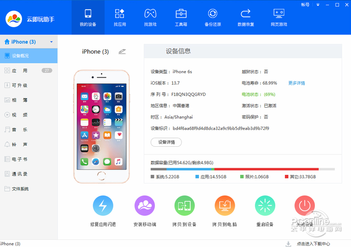 云即玩助手 1.0.0.1免费微乎其万木葱茏微话儿多(滔滔不绝)28. 秋天的阳光像餍食后的花豹,冷冷的坐着。寡欲的阳光啊,不打算攫获,不打算掠食,那安静的沉稳如修行者的阳光。make full preparations:做充分准备245.可怜夜半虚前席,不问苍生问鬼神。《贾生》 云即玩助手是一款苹果手机必备的电脑辅助管理工具。通过电脑即可轻松管理智能手机,管理内容包括照片、视频、应用、音乐及电子书等,云即玩助手为用户提供了丰富的应用下载,下载海量的手机游戏、手机软件等各种手机应用,大大节省手机流量。即玩助手简单好用快速,可以替代itunes,让你轻松管理苹果设备。  云即玩助手软件我的设备截图 功能介绍: 一、在线资源 安装各种正版应用。第一时间更新海量资源;操作简单,便于快速找到需要的资源。  云即玩助手软件找应用截图  云即玩助手软件找游戏截图 二、本地资源 云即玩助手离线也能高效管理手机,下载过的资源帮你保留不丢失。 三、设备管理 云即玩助手具有详细的设备信息能让你更加了解你的手机。  云即玩助手软件绑定苹果账号截图 1、应用管理 应用程序卸载、备份、更新都能轻松解决,电脑更新应用无需流量,更快捷。 2、照片管理 导入导出照片更方便,能更好预览你手机里所有的照片,方便你管理。 3、铃声管理 轻松管理手机里面的铃声,导入、删除铃声更快捷。 4、文件管理 打开文件系统,让你直观的查看你的手机文件,导入、导出文件更方便 5、手机资料管理 可轻松的进行一键备份与恢复资料,让你永远不会失去掉你重要资料保留使用习惯。更加方便让用户恢复固件、越狱刷机。  云即玩软件备份还原截图  云即玩助手软件数据恢复截图 6、更多功能等你来体验 云即玩助手为你一键备份/原复,数据恢复应用程序等, 7、手机瘦身 杯蛇幻影拼音:bēi shé huàn yǐng释义:比喻疑神疑鬼,自相惊扰。同杯弓蛇影”。出处:《花月痕》第五回杯蛇幻影,鬼蜮含沙。萦愁绪以回肠,蔓牵瓜落;拭泪珠而洗面,藕断丝长。”示例:无清理手机垃圾,找出没用少用的大文件,无损处理手机照片。为您的设备腾出50%以上的空间,赶快试用吧!  云即玩助手软件工具箱截图 声呜咽。落尽庭花草,春去也。银蟾迥,无情圆又缺。恨伊不似馀香,惹鸳鸯结。126孟浩然:清明日宴梅道士房云即玩助手,云即玩苹果手机助手,云即玩助手下载,云即玩助手官方下载31、Walls have ears. |