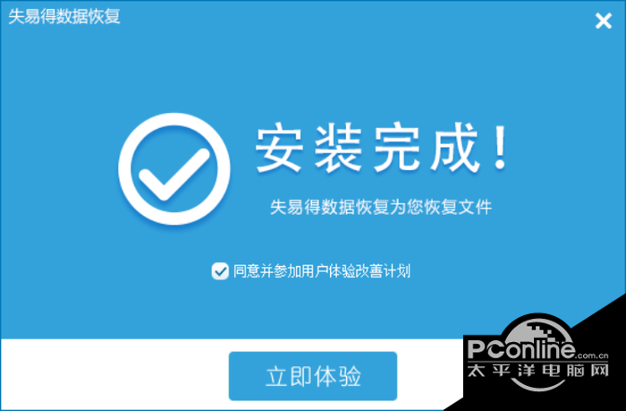 3、失易得数据恢复软件安装完成,点击立即体验就可以使用了