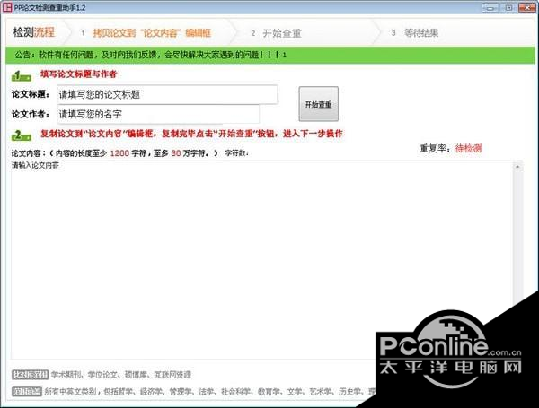 PP论文检测查重助手 1.39 正式版免费龙跃凤鸣调得意忘形兵遣将13. 缘分,不受空间领域时间的限制,它是自由的载体,游离于心魂之间。时间越久,发现相似之处越多,简直就如同遇见另一个自己。而且,遇见的那个自己随时可给自己倾注新的源泉,如沐清风,如遇天象奇观。自从有了这样的情愫入住心底,心每一天都清喜。晨起月落,时光在流逝,情自然叠加。彼此从来不需约定,心却从不离间。户外活动确实对我增强体质和丰富学校生活有益。242.身无彩凤双飞翼,心有灵犀一点通。《无题?其二》 PP论文检测查重助手能够对毕业论文进行查重,输入论文标题、论文作者就可以进行查询,帮你修改论文,软件完全免费使用!  功能介绍 论文查重 一般论文在提交到学校之前,首先要自己进行查重,这样可以及时的修改论文重复的地方,避免在学校正式查重中被淘汰,您可以通过本软件的查重栏目选择相应查重官网进行查重,价格公道,方便快捷。 论文修改 论文查重后一般多少都有一定的重复率,这时候就需要把重复的句子进行修改,如果你想提高工作效率、拓展思路的话,建议你使用我们的论文修改助手,此软件可以把一个句子改造成四个句子,供你选择。同时也提供整篇修改,速度更快,效率更高! 论文提交 对于修改后的论文一般需要再次进行查重,确保重复率低于学校的要求后就可以了,祝愿同学们顺利通过! 使用说明 本程序免费使用,遇到使用问题请及时向我们反馈更新。 使用本程序可以有效的对文章进行查重检测,每个查重检测软件都会有误差,请结合学校制定网站的查重报告,对比查重,可知道误差率。 用本软件查重修改低后,再到学校自定的网站查询一次,更保险。 58. 想一头扎进你怀里,闻着你身上的熟悉味道,告诉你这些天来的委屈,以及,我很想你。 八声甘州 柳永艰难苦恨繁霜鬓,潦倒新停浊酒杯。PP论文检测查重助手,PP论文检测查重助手下载,文科工具,教育软件10、Thoughts are free from toll. |