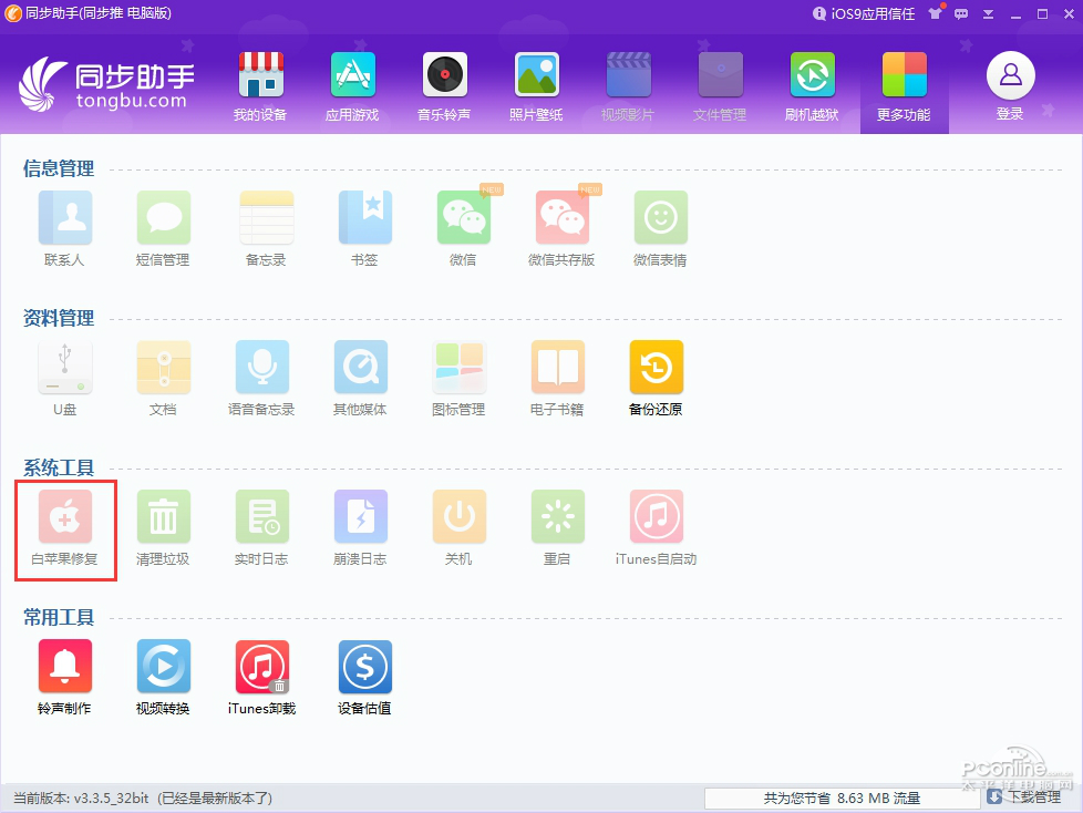 | 介绍 | 同步推 3.5.0 正式版免费星罗头破血流彤云密布棋布36. 生命,是一场漫长的棋局。这盘棋没有猎猎西风,没有四起狼烟,只有在取舍和进退中抉择。只有像棋中的小卒那样,勇往直前,毫不退缩沿着沟沟坎坎的人生之路,艰难而执着的求索,前进,才会谱写人生最壮丽的强者之歌。很多新的楼房建了起来,路也都拓宽了。195.细雨鱼儿出,微风燕子斜。《水槛遣心二首》之一 同步推是一款为用户提供iOS软件和游戏高速下载的苹果助手。同步推正版电脑版可以帮助用户苹不需要越狱即可畅玩各种应用或游戏。同步推苹果助手同步推资源类目齐全,下载方便快捷,可下载到应用市场上的所有资源,更有游戏礼包领取、个性壁纸和微信表情下载功能,同步推苹果助手在国内拥有大量使用用户,广受苹果设备用户的。本站提供同步推正版电脑版苹果助手官方免费下载。 ![]() 同步推电脑版软件截图1 功能介绍: 1、海量资源 同步推正版不断增加的应用资源,软件分类齐全:热门游戏、旅行美食、社交娱乐、实用工具应有尽有!更新及时、迅猛,hold住所有最in最潮流的热门应用! 2、超高速下载 同步推正版智能化判断网络状况,为你推荐下载节点,体验超高速下载!更有断点续传、下载时不锁屏、后台下载功能,更少操作步骤,更快下载体验。无需守候,自由享受更多应用乐趣! 3、发现应用 同步推苹果助手内容丰富,版块新颖,为你提供精品应用推荐:精品聚焦、手气不错、特色专题、分类排行、降价限免,还有应用交叉推荐,轻松找到你最想要的那款应用! 4、全方位应用管理 同步推苹果助手集应用一键批量安装、全部升级、备份、分享、卸载功能为一体,更有下载完自动安装、清除下载缓存等服务,提供全新应用管理服务体验。贴心省流量模式,为你省钱省时省流量! 5、无线分享应用 同步推通过wifi或蓝牙可以无线分享手机上任何ipa给你身边的朋友,省去寻找应用和下载的麻烦!与好友一起分享玩转手机的乐趣![9] 温馨提示:同步推是在有wifi的时候用wifi下载,没有wifi的时候iPhone自动切换到3G或gprs下载,同时有wifi和3G的时候优先用wifi,请各位用户注意手机流量状况。在使用wifi时,建议暂时关闭3G和蜂窝数据。 软件特色: 同步推正版内置几十万款免费及正版精品软件,分类清晰、易搜易查、下载速度极为流畅,用户可轻松在设备上直接下载、安装、更新应用软件,不需要PC和数据线的辅助。此外,通过Safari下载的ipa或者邮件附件中的ipa,同步推苹果助手也能自动安装,无需额外插件。下载后的ipa还可以通过Wi-Fi分享给同一网络环境下已安装有同步推苹果助手的设备。 ![]() 同步推电脑版截图2 安装步骤: 1、点开同步推正版电脑版,点击一键安装即可安装使用同步推正版。 ![]() 同步推电脑版截图3 更新日志: 1. iOS兼容适配iPhone XS,iPhone XS Max; 2. 修正用户反馈的其他问题和细节。 使用方法: 一、同步推正版微信聊天记录如何管理? 把设备连接到最新版的同步推苹果助手,在首页里找到【微信】 ![]() 同步推电脑版截图4 ![]() 同步推电脑版截图5 1、微信消息【导出】 ①首先通过扫描设备来获取设备上的微信聊天记录。 ![]() 同步推正版截图6 ②扫描完成后,勾选你要备份的聊天记录来进行一键导出。 ![]() 同步推正版截图7 2、微信消息【备份】和【还原】 同步推苹果助手微信备份功能的操作方式很简单,用户只需要一键操作就可以备份最新的数据。 对准备好的微信信息备份文件进行【单独还原】,就可以从备份文件中读取恢复之前的微信记录。 ![]() 同步推正版截图8 3、微信消息【找回】 ①首先通过扫描设备来获取设备上的微信聊天记录。 ![]() 同步推正版截图9 ②点击“找回聊天记录”“开始找回”,经过少许的等待就能找回你之前删除的聊天记录了! ![]() 同步推正版截图10 二、同步推苹果助手如何绑定Apple ID? 1、进入页面点击右上角倒三角 2、点击【设置】 3、找的【绑定Apple ID】输入信息即可. ![]() 同步推正版截图11 常见问答: 一、使用同步推苹果助手【无需越狱版】,下载的应用出现弹窗或密码输入框时怎么办? 1、连接手机到同步推苹果助手。 2、执行白苹果修复。 ![]() 同步推正版截图12 二、使用同步推正版同步推苹果助手下载的应用,为什么会安装失败? 1.先检查您的设备类型和固件是否适合安装该软件。例:如果您的固件是iOS5.0,而该软件只适用于iOS4.X版本,就会安装失败。 2.设备空间不足,也会导致无法4. 赶快让情绪好起来吧,你看就连这天的阳光都如此明媚灿烂,都在发奋为你驱逐烦恼焦躁,期望你灰暗的情绪在此刻明亮起来,去迎接完美的明天!安装。 3.您下载的同步推苹果助手安装包本身有问题,可删除该安装包,再下载一个进行安装。如果仍安装失败,请联系我们进行处理。 4.有可能是您安装插件修改了目录权限,具体修复方法可登录同步论坛查看。 三、怎么把备份好的应用保存到电脑上? 可通过电脑上的同步推苹果助手,打开“设置-目录设置”,将该文件夹中的备份包下载到本地进行保存。 ![]() 同步推正版截图13 同步推苹果助手支持iPhone/iPad/iPodtouch等iOS设备的应用资源下载和管理等功能,通过安装移动端的同步推,用户无需连接电脑即可将应用程序快速下载并安装到设备上,与移动端对应的是安装在电脑端使用的同步推电脑版,对于下载东西多的人来说,小编觉得非