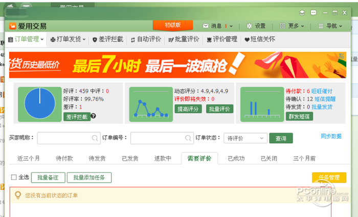 使用方法: 一、阿里旺旺卖家版(千牛)怎么用? 1、输入你的淘宝账号和密码。有两种方式可以进入一种是工作台、一种是旺旺模式,以旺旺模式进入就和买家下载的旺旺是相同的,在这小编不在一一介绍了。就以工作台的模式登录。 ![]() 软件截图10 2、登录后,会分成三个界面。左侧是联系人,中间是店铺的交易信息店铺动态和待办事项。左侧是管理软件,交易管理等等。 ![]() 软件截图11 3、中间的这些是都可以点击的。比如待评价数量为5,说明您有需要待评价的宝贝。点击进入。待评价的5个订单就会出现在框里。您可以一个一个手动评价,是免费的,您也可以购买批量评价。节省时间。左侧框里可以搜索顾客。 ![]() 软件截图12 4、新订单和付款,都会提示您的。非常的清楚。还可以设置自动回复内容。 ![]() 软件截图13 二、阿里旺旺卖家版(千牛)卖家交易管理怎么进行使用? 1、同样输入账号密码,登陆我们的账号。 2、登陆了进入以后,我们在主界面上,我们可以点击上面的app,也就是一个插件中心的,我们点击一下。 ![]() 软件截图14 3、我们点击上面的插件中心,我们进入以后,我们就可以看到我们所有的插件了,插件有些我们用起来是很方便的。 ![]() 软件截图15 4、我们点击上面的交易中心,我们如果没有这个插件的话,我们需要第一次添加插件和应用的。 ![]() 软件截图16 5、一般我们都是初级版本的,因为这个是免费的,我们就可以直接点击打开就可以使用了。 ![]() 软件截图17 6、我们会发现里面有好些的应用的,我们需要一个个的去摸索了,最基本的话,哦我们打开以后,如果有交易的话,就会直接提醒我们了。 ![]() 软件截图18 常见问答: 一、阿里旺旺更新千牛后,每天重发怎么弄? 1、可以通过千牛工作台上的“常用入口”点击进入“我的阿里”,选择“供应产品”-“销售中的产品“,全选您之前发布的所有产品信息,点击重发即可。 二、提示防火墙/代理问题 1、个人防火墙拦截:如无法解除拦截或防火墙已过期,可考虑退出防火墙再登录阿里旺旺。迈克菲防火墙过期后,可在控制面板中卸载。 2、电脑设置了代理服务器。 如果您的电脑是通过代理服务器上网的,那千牛也是需要设置的哦。 温馨提示:如果不清楚自己电脑上的代理设置,教您一个方法:打开IE浏览器的“Internet选项”-“连接”-“局域网设置”-“代理服务器”中就可以查看到本机的代理设置情况了哦! ![]() 软件截图19 三、账号在其它地方登录 1、可以在千牛--安全中心查看历史登录记录,如怀疑账号有非本人使用的记录,请尽快修改账号密码。 ![]() 软件截图20 ![]() 软件截图21 这款阿里旺旺卖家版也就是千牛-卖家工作台。它是阿里巴巴集团出品,为淘宝卖家、天猫商家提供使用的一款软件。包含卖家工作台、阿里旺旺、消息中心、订单管理、商品管理等功能,这款软件的核心是为卖家整理并且提供店铺日常管理工具、销售信息、和对内商品,通过存心养性拼音:cún xīn yǎng xìng释义:保存赤子之心,修养善良之性。旧时儒家宣扬的修养方法。出处:《孟子·尽心上》存其心,养其性,所以事天也。”示例:释氏只令人到知天处休了,更无~事天也。★《二程全书·外书十二》一系列的服务管理模式提升卖家的经营效率,奠定彼此的合作共赢关系,那么这款对于淘宝卖家来说肯定是不可缺少的哦! 雨外蛩声早,细织就霜丝多少?说与萧娘未知道。向长安,对秋灯,几人老?城阙辅三秦,风烟望五津。旺旺卖家版官方下载,旺旺卖家版,阿里旺旺卖家版下载In 1999, it increased (rose / jumped / shot up) from 5 to 10 percent of the total (to 15 percent / by 15 percent). |