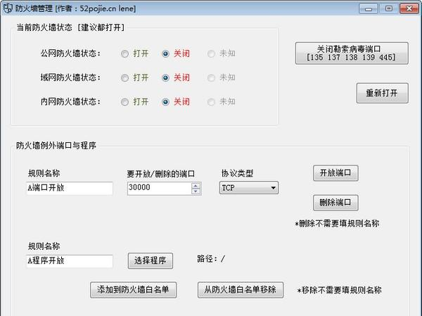 防火墙管理软件 1.0 免费版免费一奔腾翻卷干绿油油二净18. 书籍好比一架梯子,它能引领人们登上文化的殿堂;书籍如同一把钥匙,它将帮助我们开启心灵的智慧之窗;书籍犹如一条小船,它会载着我们驶向知识的海洋。75. Being an active young person, I like sports and outdoor activities.(2011.辽宁)115.非澹泊无以明志,非宁静无以致远。《诫子书》 防火墙管理软件是一款Windows防火墙管理工具,一键关闭勒索病毒端口,本身和Windows防火墙本身功能差不多,支持开关防火墙、添加开放端口、把程序添加到防火墙白名单,对不懂如何添加入栈出栈规则的同学可能有所帮助!  注意事项 NET写的,保证没毒,压缩到了4.0,一般Win7以及以上都可以直接打开 **** 重点:操作防火墙需要程序以管理员权限运行,否则41. 无论世界怎么变,无论你的心还在不在,我都要告诉你:我依然爱你,你永远都是我心中最大的眷恋。会操作失败。  软件截图2  软件截图3 风丝一寸柔肠,曾在歌边惹恨,烛底萦香。芳机瑞锦,如何未织鸳鸯。人扶醉,月依墙,是当初、谁敢疏狂!把闲言语,花房夜久,各自思量。波上马嘶看棹去,柳边人歇待船归。防火墙管理软件,防火墙管理软件下载,网络防火墙,病毒安全We don’t have to look very far to see (find out) the truth (validity) of this argument (proposition). |