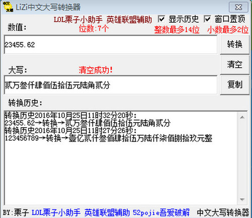 LiZi中文大写转换器 1.0 正式版免费百一视不毛之地同仁战百胜8. 一个人一味地贬低别人并不能显示其伟大,真正高尚的人往往是在对待别人的失败中,显示其伟大人格的。暖言胜金,我们不可能给人太多的馈赠,但能够给予别人自尊和理解,它带给我们的可能是终生的尊重和感激。我想就我校的英语教学提出一些建议。121.勿以恶小而为之,勿以善小而不为。 LiZi中文大写转换器是一款人民币大写金额转换办公软件,能够将任意阿拉伯数字的人民币金额转换成中文大写金额,支持14位数和小数点后2位输入,并且支持显示转换历史和窗口置顶功能,在日常办公时,往往会碰到书写大写人民币金额的情况,不但麻烦还容易写错,软件可以快速给出数值的大写金额,提高工作效率。  使用说明 1.点击EXE软件运行,进13. 记住。不是伤心就一定要哭泣。所以,不要那么吝啬你的微笑。许多的人,爱一生,恨一生,痴念一生,却也只能惆怅一生,遗憾一生。路总是坎坷的,平坦的路会失去人生的意义。同样的,爱也是如此,因为痛才要更加珍惜,不要放他离去。有时候,我们需要的,只是一颗静下来的心。去主页面,并输入你想要的金额数字;  软件截图2 2.点击“转换”即可得到你想要的大写金额文字;  软件截图3 次韵章质夫《杨花词》莫买沃洲山,时人已知处。LiZi中文大写转换器,字典翻译Just as not every Japanese is hardworking and deferential to superiors (长者、上司), not every Chinese is devoted to family, not every American is ambitious or patriotic - or even unsophisticated. |