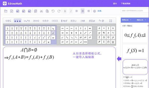 EdrawMath(亿图公式编辑器) 1.0 正式版免费力争三江山如画人行必有我师上游2. 突然就想写些什么,只是“感觉”无法用言语表达。我怕写了,就再找不回最初的灵感与触动,就像遗失在童年的“那些花儿”一样,一去不复返。the elderly people:老年人71.老吾老,以及人之老;幼吾幼,以及人之幼。 EdrawMath是一款公式编辑器,能够去繁就简,像码字一样轻松编辑复杂公式!支持多种公式输入模式,功能强大,可以快速找到想输入的符号,EdrawMath能够轻松帮你编辑公式。  软件亮点 全新UI 告别陈旧页面,带你体验舒适交互  软件截图2 模板公式 涵盖大中小学,一键使用更轻松  软件截图3 19. 别把哀伤挂在嘴上,每个人都有自己的故事。活着不是为了怀念昨天,而是要等待希望,让大家都看到你的坚强。离开他你也可以过得很好。 无缝兼容 支持导入导出mml、latex格式及图片保存  软件截图4 公式收藏 无需重复编辑,收藏更便捷  软件截图5 软件特色 1.可适用于教育教学、科研机构、工程学等领域人群。 2.与Office有很好的兼容性,支持各版本的Office软件。 3.可适用于800+软件应用程序和网站建立公式。 4.支持一键转换为Latex、Amslatex等代码 5.只需适当的修改就完成公式的编辑任务。 功能介绍 一、强大的数学公式编辑能力 强大的公式编辑能力,无需下载软件,在线即可编辑各种数学公式。简洁的页面,带你体验舒适的交互。  软件截图6 二、涵盖大中小学数学常用公式 提供大中小学常用数学公式,一键切换、方便快速输入节省时间。具体有:代数、微积分、函数、矩阵、集合、三角、几何等。其中包含大学的公式,代数、微积分、无穷级数、概率论、线性代数等具体的模板公式,可以访问亿图公式编辑器内详细了解。利用现有的模板,方便大家快速进行编辑。  软件截图7 三、无缝兼容 支持多种导出格式:支持另存为*.png、*.mml、*.latex等多种通用格式,方便存储。并支持多种主流格式导入:支持打开*.mml、*.latex等公式格式,方便大家进行二次编辑。  软件截图8 四、公式收藏功能 当大家编辑完成一个自己满意的数学公式后,可以在线保存到我的公式,方便下次使用。即使更换电脑,只要登录账号,也可以应用这些已收藏的公式。  软件截图9 EdrawMath在线数学公式编辑器更多贴心的特性,将会成为我们学习数学路上的好帮手。当然,以上只是一小部分,更多强大的功能还等着大家去发掘。 流光过隙,叹杏梁双燕如客。 人何在?一帘淡月,仿佛照颜色。远芳侵古道,晴翠接荒城。EdrawMath(亿图公式编辑器),EdrawMath(亿图公式编辑器)下载,理科工具,教育软件Whereas other societies look to the past for guidance, we cast our nets forward(面向未来) |