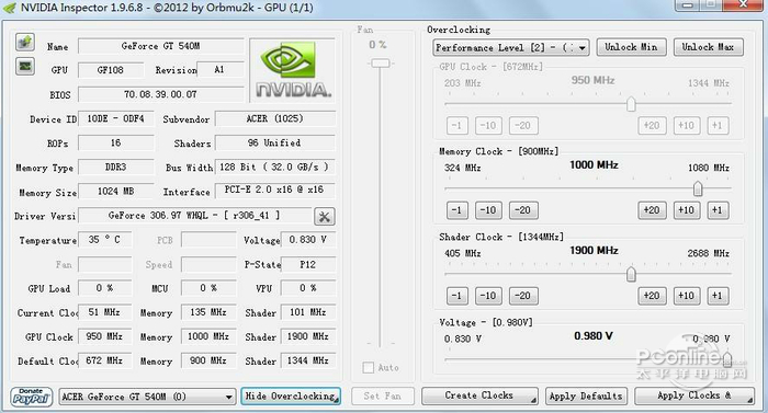 NVIDIA Inspector 1.9.7.8免费宁缺毋滥应接不挥汗如雨暇14. 至于所有的花,已交给蝴蝶去点数。所有的蕊,交给蜜蜂去编册。所有的树,交给风去纵宠。而风,交给檐前的老风铃去一一记忆、一一垂询。make suggestions on 对……提出建议385.落红不是无情物,化作春泥更护花。《己亥杂诗》 NVIDIA Inspector,作为一款NVIDIA专用的检测工具具备超频功能,是针对NVIDIA显卡而打造的检测工具。不仅可以像GPU-Z一样检测显卡的各种信息,还能对显卡的频率、电压、甚至风扇转速进行调节,具有强大的监控功能,提供的多种NVIDIA显卡的超频选项便于用户执行超频操作。在用户手动点击“Show Overclocking”按钮之后,NVIDIA Inspector中文版包括电压调节、风扇调节、核心频率调节、显存频率调节、流处理器频率调节、工作等级设定等一系列选项。太平洋下载中心为您提供NVIDIA Inspector官方下载。  NVIDIA Inspector官方下载截图1 软件特色: 1、NVIDIA Inspector是针对NVIDIA显卡而打造的检测工具。 2、用户可以查看NVIDIA显卡的名称、GPU、修订、BIOS、设备ID、子供应商、光栅、渲染器等信息。 3、强大的监控功能,用户可以监控CPU温度、电压、风扇、转速、当前频率等信息。 4、提供多种NVIDIA显卡的超频选项,便于用户执行超频操作。 5、NVIDIA Inspector主要用于查看NVIDIA显卡的信息以及执行超频。  NVIDIA Inspector官方下载截图2 安装步骤: 下载并解压NVIDIA Inspector中文版,运行“nvidiaInspector.exe”;随即进入NVIDIA Inspector的主界面,无需安装。 使用方法: 1、用户可以在NVIDIA Inspector中你查看NVIDIA显卡的名称、GPU、光栅、渲染器等信息。 2、支持查看驱动版本,便于用户进行更新。 3、强大的监控功能,能够协助用户监控CPU温度、PCB、电压、风扇、转速、GPU负载等参数。 4、超频选项,其提供了多种超频预设供用户进行选择。 常见问答: 1、nvidia inspector可以锁定帧数吗? 答:可以。由于帧数会在40到60间快速跳动,感觉到掉帧的情况可用此方法,稳定的帧数比百不断变化的帧数有更流畅度的游戏体验。 2、用NVIDIA Inspector调高显卡风扇转速然后降低显卡温度可行吗? 答:可以,但是最多100%的转速。 11. 不从泥泞不堪的小道上迈步,就踏不上铺满鲜花的大路。