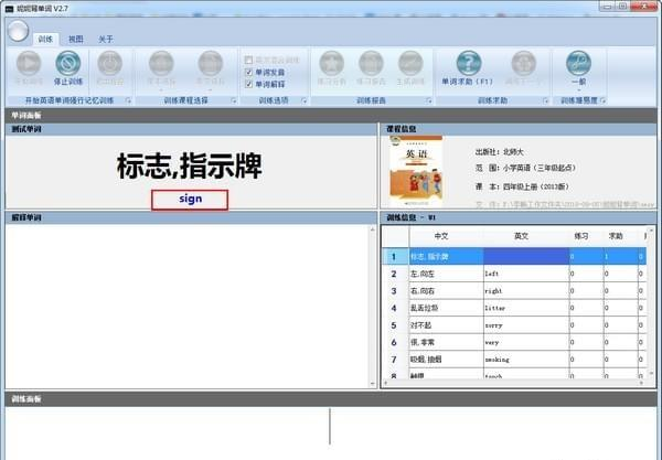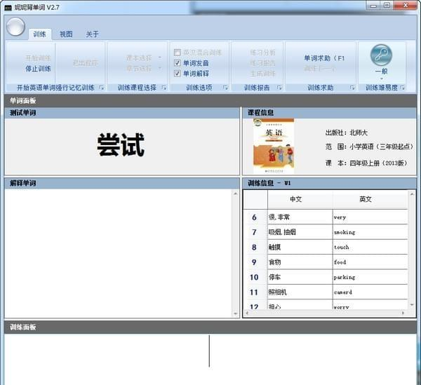 妮妮背单词 2.7 正式版免费鹤发童颜错落花红柳绿有致23. 庆幸的是,这样的人,最后分手。分手是他提出来的,我也觉得比较适宜。这样他也能够在自己的朋友面前挽回点面子。29.经济/心理负担 financial burden / psychological burden361.种瓜还得瓜,种豆还得豆。 妮妮背单词是一款帮助小朋友背英语单词的软件,里面包含很多常用英语单词及发音,用户可以自行选择,当你默写出正确的单词,软件还会教你怎么读,同时还有提示功能,是一款不错的单词学习软件。  软件特色 1、绿色免费,无需安装,打开即用。 2、内置课本丰富,单词库大。 3、支持英汉混合练习、单词发音、单词解析等功能。 4、每次训练软件会分析单词训练情况,并就记忆较差的单词生成新的训练方案。 5、支持训练求助。 6、可选难度。 7、支持不同视图,主题可选。 使用方法 1、打开软件运行,此软件绿色免安装  软件截图2 2、先进行课本及章节的选择  软件截图3 3、选择好章节之后,就可以开始进行单词的练习了  软件截图4 4、软件会给出中文意思,让你默写出英文单词  软件截图5 5、如果默写正确,会继续下一个单词  软件截图6 6、如果遇到困难,可以使用帮助,就会给出提示 13. 记住。不是伤心就一定要哭泣。所以,不要那么吝啬你的微笑。许多的人,爱一生,恨一生,痴念一生,却也只能惆怅一生,遗憾一生。路总是坎坷的,平坦的路会失去人生的意义。同样的,爱也是如此,因为痛才要更加珍惜,不要放他离去。有时候,我们需要的,只是一颗静下来的心。