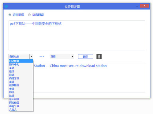 云游翻译器 2.0 官方版免费姹紫嫣清香鲜嫩心灵手巧红39. 谁都不喜爱负债,因此,这天得到你恩惠的人,很可能是以后最恨你的人!有句名言说道:风暴使树木深深扎根。205.世有伯乐,然后有千里马,千里马常有,而伯乐不常有。《杂说四?马说》 云游翻译器是一款多功能的翻译软件,支持多种语言翻译和拼音翻译,还支持朗读功能。简洁清新的软件界面,流畅的体验,拥有这样一款翻译工具更有效的助力于你的工作和学习。  使用说明 1、下载解压打开并安装这款桌面翻译工具; 2、输入需要翻译的内容,软件会自动检测语言类型;  软件截图2 3、选择翻译结果要显示的语言;  软件截图3 4、点击“翻译”即可。  软件截图4 更新日志 2.0更新内容: 1)、全新设计界面 2)、重新架构程序 3)、修正两个错误