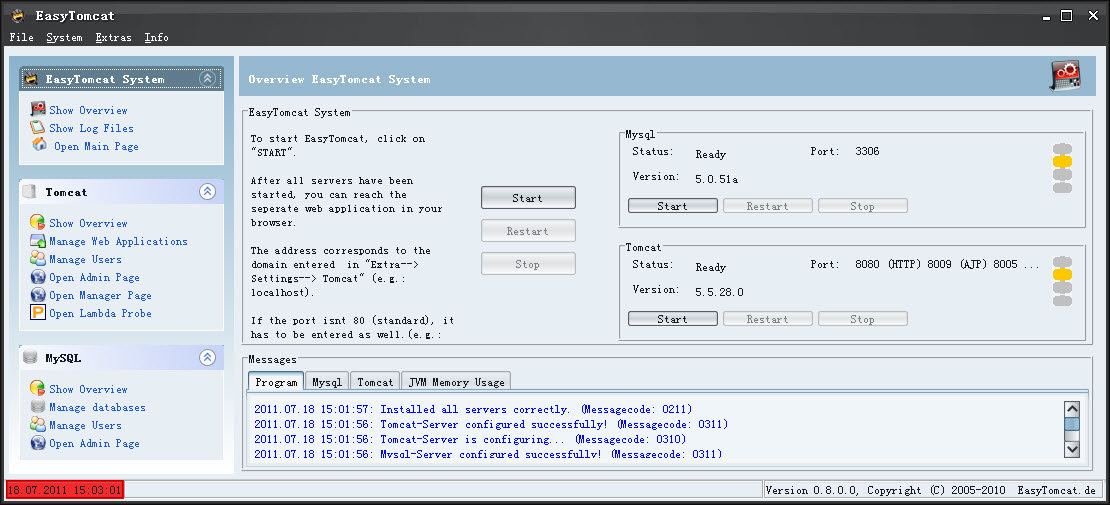 //dl.pconline.com.cn/  Tomcat和MySQL配置管理工具(EasyTomcat)是时下互联网常用的软件之一,该软件绿色、安全、无毒,让你可以放心使用!如果Tomcat和MySQL配置管理工具(EasyTomcat)是你需要的工具,就赶紧来吧!本站为你提供Tomcat和MySQL配置管理工具(EasyTomcat)官方下载。
