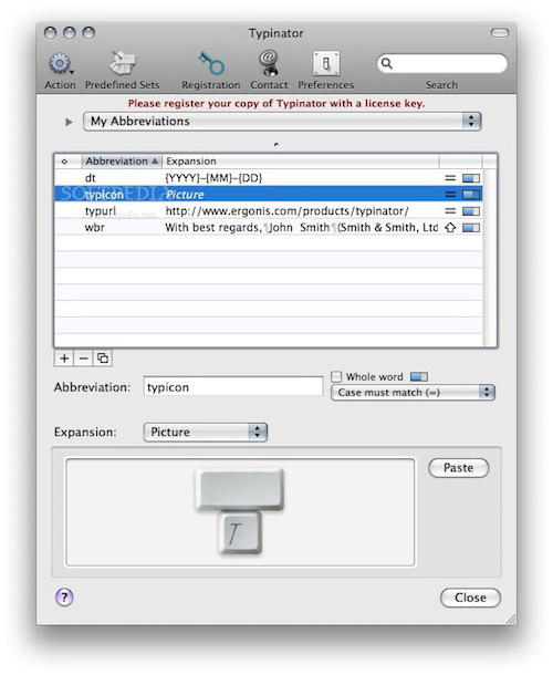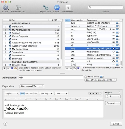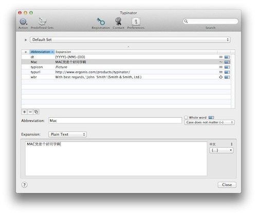 Typinator for mac 8.6.0 正式版免费口静静地想(静思默想)杂乱无章是心非32. 什么路都能够走,唯独绝路不能走;什么路都能够选择,唯独歧途不能选择。我充分认识到英语对我的未来是多么的重要。58.智者乐水,仁者乐山。 Typinator for mac是Mac平台上的一款帮助用户增加打字效率的Mac文字输入软件,Typinator for mac可以提高你的打字速度和效率,智能储存你的常用文字,快速输入关键字,通过用简短文字来替代长句子、常用邮箱地址、帐号、网址等等。  功能介绍 1、简单的配置 快速轻松地创建缩写和分配替换文本和图片。 2、简化迁移 如果您已经使用TextExpander,TypeIt4Me,或类似的应用程序,你可以使用简单的拖放和拖放进口方式迁移到高度赞扬Typinator。 3、转换选项 瞬间转换成货币值,测量单位和更多。 4、丰富的应用程序的兼容性 您的文字扩展功能在所有与闪电般快速精准的OS X应用程序。  软件截图2 软件特色 搜索最近的扩张均在Typinator窗口查找现场和快速检索。 拖动一个或多个项目的缩写列表到Finder窗口,现在出口一组只包含选定的项目。 新的技术基础(新的编译器,新图书馆,更快的代码,等等)。 新的诊断功能,用于追踪非beta版本来与安全的输入模式的问题。 改进的外观(特别是关于在用户接口元件的文本)上优胜美。 在某些情况下边框稳定性提高。  软件截图3 内部清理。 当一个新的版本可用,Typinator现在显示35. 如果当初我勇敢,结局是不是不一样。如果当时你坚持,回忆会不会不这样。一条消息,告知新的版本是否是免费的。 围绕着一个化妆品的问题,在优胜美地输入表单裁剪对焦框。 修复了导致手动检查新版本失败的问题。 解决内部问题,可能会导致增加的内存使用量随着时间的推移。 蝶恋花 欧阳修孤城背岭寒吹角,独戍临江夜泊船。Typinator,for,mac,其它工具34、Difficult the first time, easy the second. |