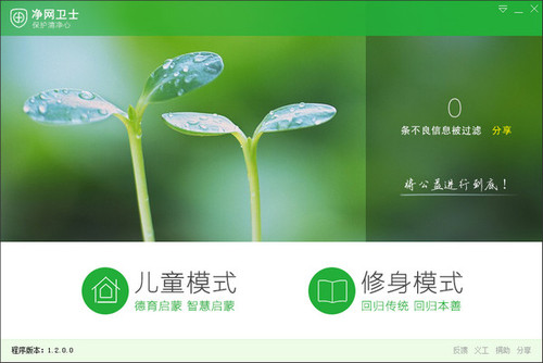 净网卫士是一款互联网信息过滤软件,现在互联网上一些不健康内容横行,家里孩子上网的时候不免会碰到,该软件能够有效地拦截不健康的内容,给孩子的网络世界架起保护墙。  软件特色 [贴吧]不显示贴吧内每个论坛首页的帖子缩略图: 不显示百度贴吧一些不健康的图片。 [贴吧]不显示贴吧内容的头像和签名图片: 不显示百度贴吧一些不健康的图片。 隐藏评论页面的头像: 隐藏百度贴吧评论网页中的不健康头像。 对搜索引擎的推荐内容特殊净化(不针对搜索结果): 会不显示相关的垃圾信息。 严格搜索模式: 会严格过滤你在搜索引擎输入的不良关键词汇。 开启智能文章页模式: 把一些文章内页右侧的所有广告图片隐藏掉。 屏蔽新浪博客左侧推荐内容: 选择它可以不显示新浪博客左侧的推荐条目。 对大型网站进行强化过滤: 选择它对大型网站进行更高级别的垃圾信息过滤。  软件截图2 水仙花遗言冀可冥,缮性何由熟?净网卫士,网络防火墙24.Ill news travels fast. 坏事传千里。 |