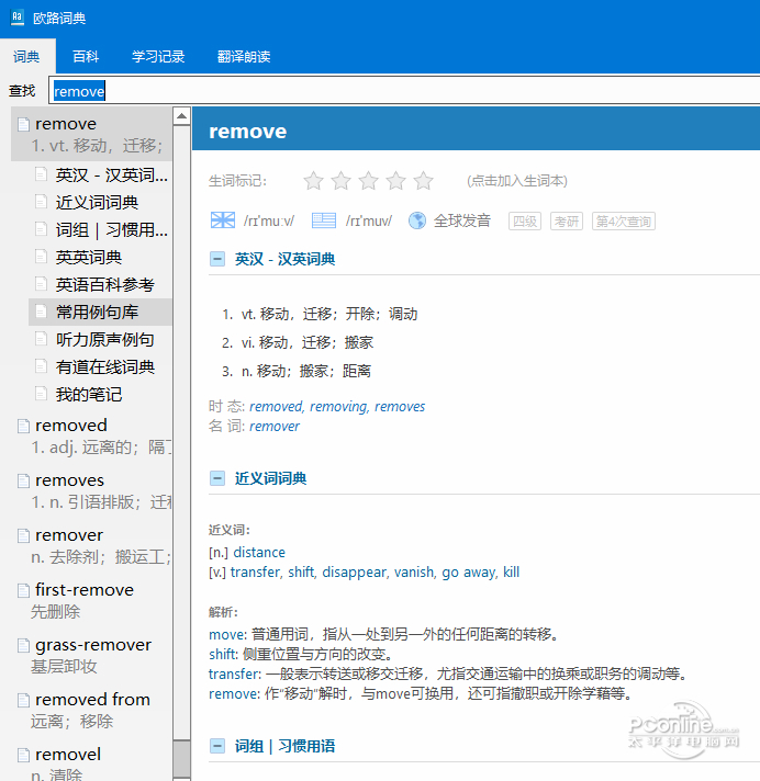 寸草不留拼音:cùn cǎo bù liú释义:连小草也不留下。比喻搞得精光,一无所剩。出处:宋·楼钥《攻媿集·八十一·英老真赞》大地一变,直教寸草不留。”示例:若是恼了我,连你西歧~。★明·许仲琳《封神演义》第五十九回 常见问答: 问:如何使用生词本? 答:查找单词时点击生词标记中的星星,能够把单词添加进生词本,并且给单词的陌生程度评级。 问:如何查看我的生词本? 答:打开软件后一开始显示的界面是词典界面,想要查看自己的生词本需要切换至学习记录界面,点击学习界面左侧的我的生词本即可查看自己的生词本。 问:百科功能有什么用? 答:切换至百科界面后,能够查看各种英语相关的学习资料。能够查看各类问题的英语写作格式、内容规范,能够查看听力、笔试等学习资料,能够阅读一些介绍西方文化背景或者如何用英语描述中国社会的资料。  软件截图5 欧路词典是一款非常优秀的软件,在拥有传统词典所有功能的基础上,增加了近义词查找功能。对于想要学习英语的人来说,它的百科功能非常有用,能够了解中西方的文化、政治背景,并且熟悉各类文体的英语写作范式。它还能在电脑的任何地方快速查找单词、进行翻译,当然如果你不行要这些功能也可以在设置中关闭。喜欢的朋友可以将欧路词典官网下载体验。 君莫舞!君不见、玉环飞燕皆尘土。闲愁最苦,休去倚危阑,斜阳正在,烟柳断肠处。英雄割据虽已矣,文采风流今尚存。欧路词典,欧路词典PC版下载,欧路词典桌面版下载,欧路词典下载23、Practice makes perfect. |