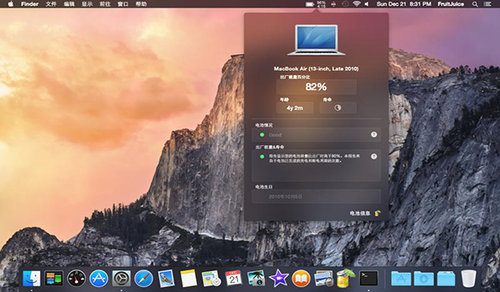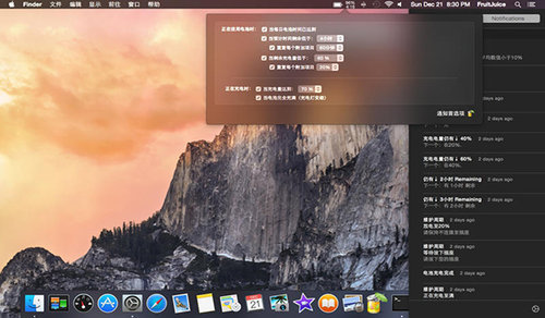FruitJuice Mac版是Mac os平台上的一款专业为Mac电脑量身制作的Mac电池管理软件,FruitJuice Mac版可以帮助用户更好的管理自己电脑的电池,非常的不错,而且方便好用,再也不要担心电池的工作问题了,支持一键检测电池的状态。  软件特色 一款Mac平台的最好的电池管理工具,专门为苹果笔记本量身打造,为我们提供电池监控、通知、每日电池的建议、指导维修和诊断等相关信息,确保我们的笔记本电池可以获得最长的运行寿命。  软件截图2 更新日志 【1】在通知中心点击时通知显示全文。 【2】 本地化图表键在电源历史观点的文字。 【3】 在菜单栏中使用更新的字体使用系统字体。 【4】 在维护周期防止系统休眠。 【5】 语言的更新。  春去,尚来否?正江令恨别,庚信愁赋,苏堤尽日风和雨。叹神游故国,花记前度。人生流落,顾孺子,共夜语。沙场烽火侵胡月,海畔云山拥蓟城。FruitJuice,for,mac,其它工具36.To live is to learn,to learnistobetterlive.活着为了学习,学习为了更好的活着。 |