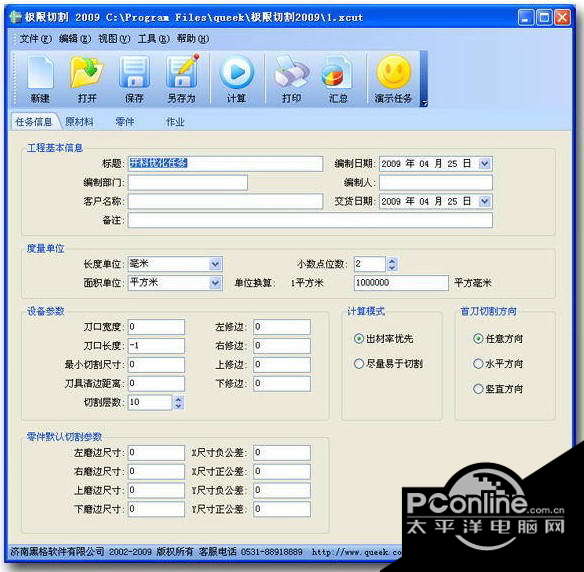 极限切割板材、线材、卷材开料优化软件 10.0 专业版免费滔滔不挥金如绝无仅有土绝最可怕的不是失恋,是心身不全;最舒适的不是酒店,是家里;最难听的不是脏话,是无言;最美好的不是未来,是今天。课堂上,你将主要学习唐诗,唐诗反应了中国传统文化、深受中国人喜爱。247.天意怜幽草,人间重晚晴。《晚晴》 极限切割板材、线材、卷材开料优化软件是其他行业频道下深受用户的软件,太平洋下载中心提供极限切割板材、线材、卷材开料优化软件官方下载。 1.简单易用人机界面极限切割系列软件秉承黑格软件一贯的传统,提供简单明了,操作极为简单的人机界面,用户初次使用就很容易上手。对于有经验的用户,系统还提供了更为强大的界面定制能力,以便使用系统提供的更为强大的功能。 操作简便: 1)输入原材料尺寸。 2)输入零件尺寸。 3)计算(一个完美的切割方案呈现在您的面前)。 2.强悍的套料优化算法。 极限切割提供了性能极为强悍的优化计算引擎,不仅能为用户提供非常高的出材率,而且计算速度表现也极为流畅。 目前极限切割系列软件可以支持线材(型材),板材,卷材,坯材,原材料反向计算等各种复杂计算模式。 同时,针对一刀切,刀口宽度(刀损,锯缝等),刀口长度,刀路走向优化,掰边距,修边,清边,磨边,公差等等几乎常见的所有切割参数进行优化计算。 极限切割异形版更是提供了目前最先进的计算技术,支持任意形状的原材料和任意形状的零件进行套料优化计算。 3.出色的余料合并策略。 极限切割独有的余料合并技术,能让您在无法避免大量余料出现的时候,能够最大可能的得到具有再利用价值的余料,以便在以后的切割任务中重复利用。 4.高级走刀路线优化: 极限切割提供非常人性化的走到路线,极大提高套料切割方案的切割效率。 5.齐全的辅助功能: 多年的积累,极限切割现在拥有丰富的外围功能。这些功能主要包括数据与EXCEL的交换,排料图导出为CAD格式,切割设备G代码的自动生成,原材料库,余料库管理,标签打印等等。 极限切割板材、线材、卷材开料优化软件截图1 极限切割板材、线材、卷材开料优化软件截图2
